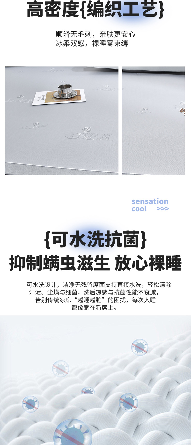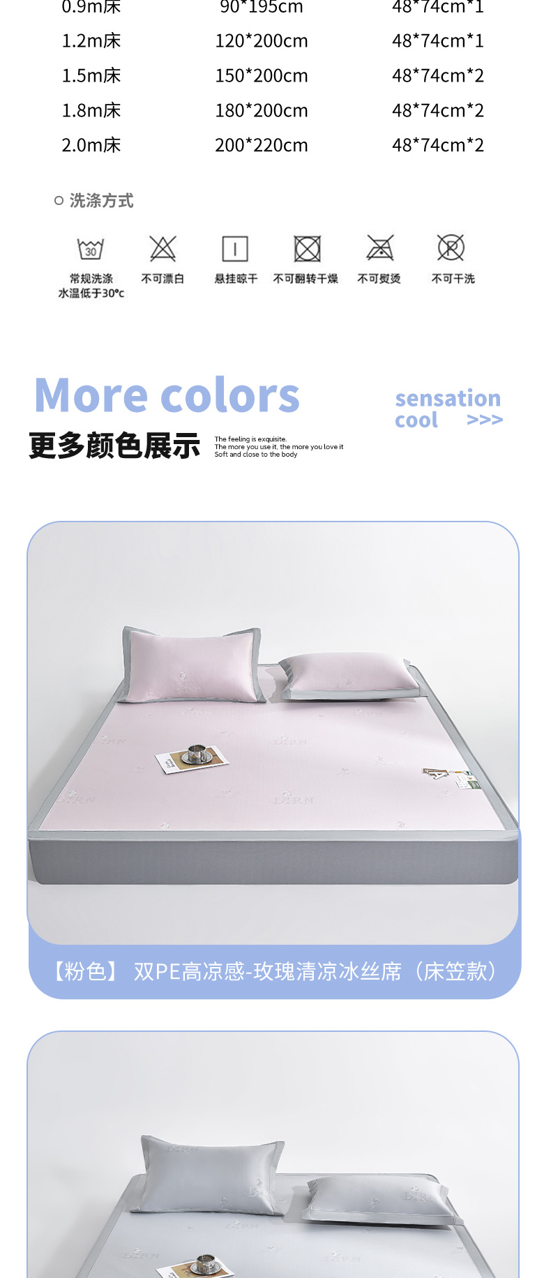(总)2023新款超精密冰丝席-小斜纹系列-床笠款藤席凉席竹席,粉色,蓝色,绿色,银灰