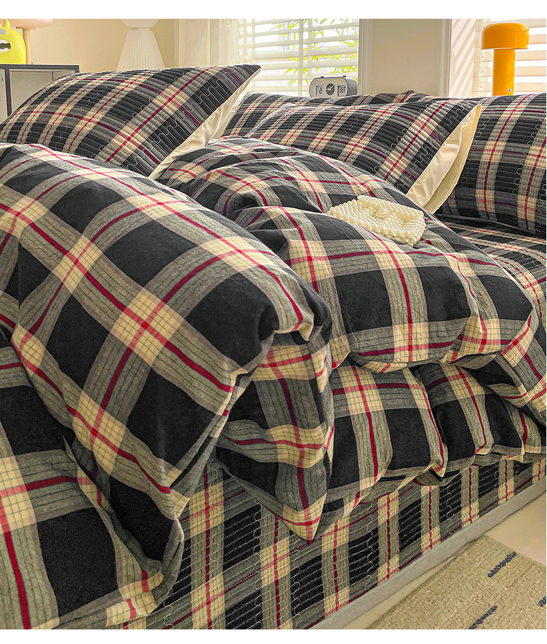 商品名称:梦精灵家纺 2026新款全棉纯棉色织水洗棉四件套绗缝夹棉床盖防滑床单四季通用米单人学生宿舍 木槿黑