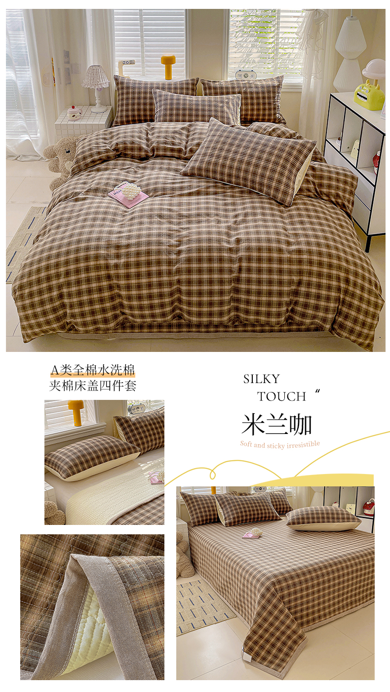 (总)梦精灵家纺 2026新款全棉纯棉色织水洗棉四件套绗缝夹棉床盖防滑床单四季通用米单人学生宿舍,浮影紫,米兰红,米兰咖,米兰米,木槿黑,可颂-咖,利奥-红,利奥-蓝,利奥-绿,罗恩-灰,维多利亚-米,西蒙-黄,西蒙-蓝,左岸-粉,雅灰,棕咖,鹅黄,幻影绿,桔红