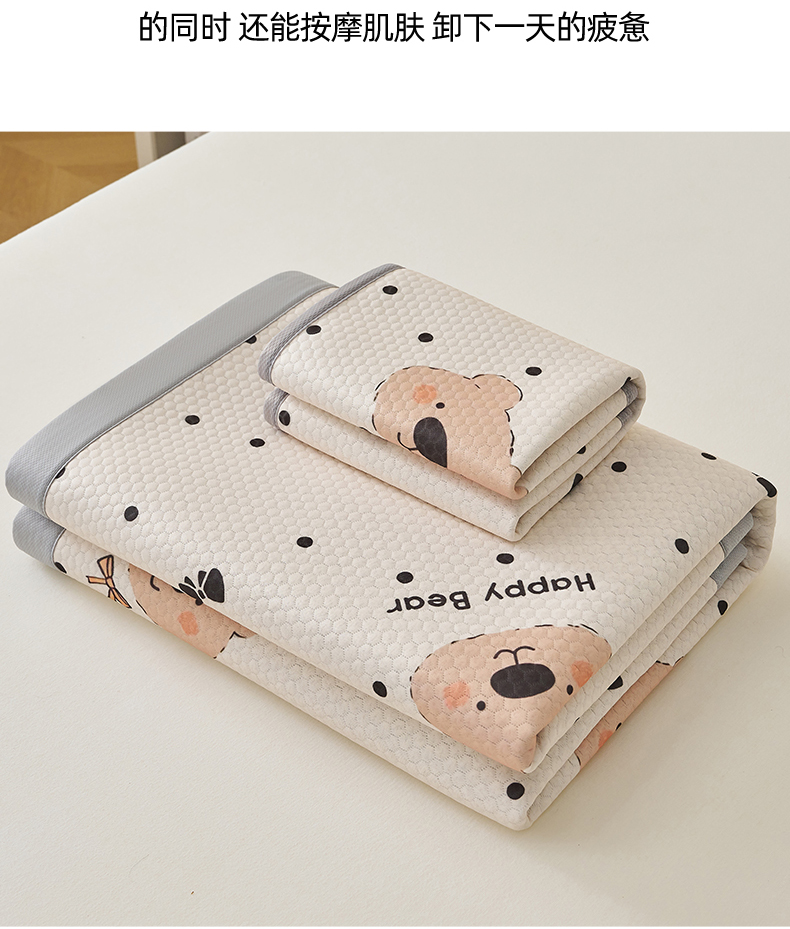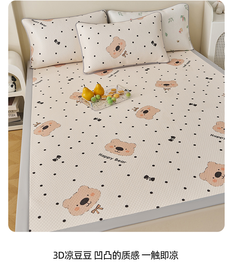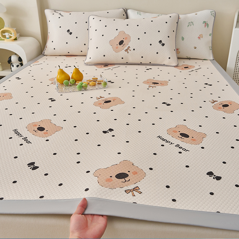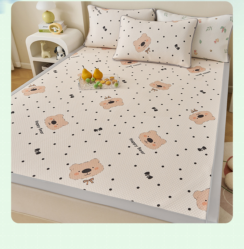 商品名称:奇丝雅 2026新款A类印花冰豆豆凉席三明治透气网冰丝凉席家用双人冰丝席床单可机洗大床图 大床款-抱抱熊