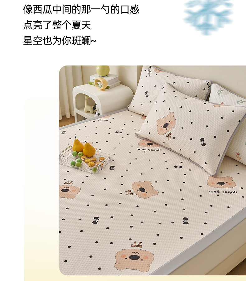 (总)奇丝雅 2026新款A类印花冰豆豆凉席三明治透气网冰丝凉席家用双人冰丝席床单可机洗大床图,大床款-巴比兔,大床款-抱抱熊,大床款-饼干熊,大床款-海洋世界,大床款-卡皮巴拉,大床款-蘑菇乐园,大床款-甜甜圈,大床款-兔宝贝,大床款-维尼熊,大床款-小企鹅,大床款-熊猫家园,大床款-叶语