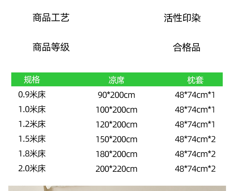 180x200cm单凉席+枕套一对