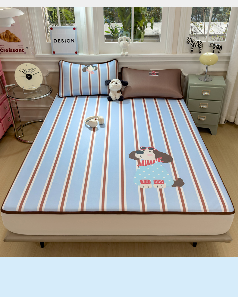 丝羽坊 2026新款ins设计师原创大版小清新卡通冰皮复合软凉席 汪星日记-平铺款
