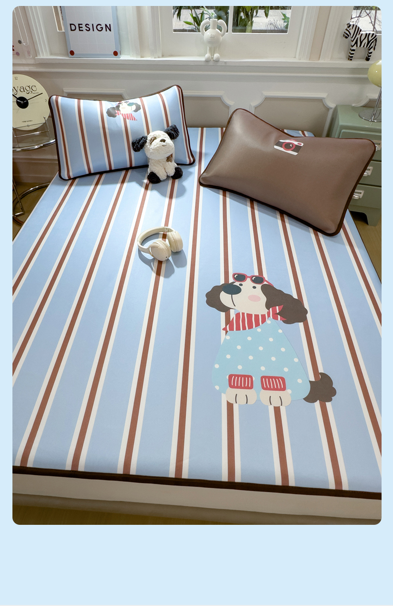 商品名称:丝羽坊 2026新款ins设计师原创大版小清新卡通冰皮复合软凉席 汪星日记-平铺款