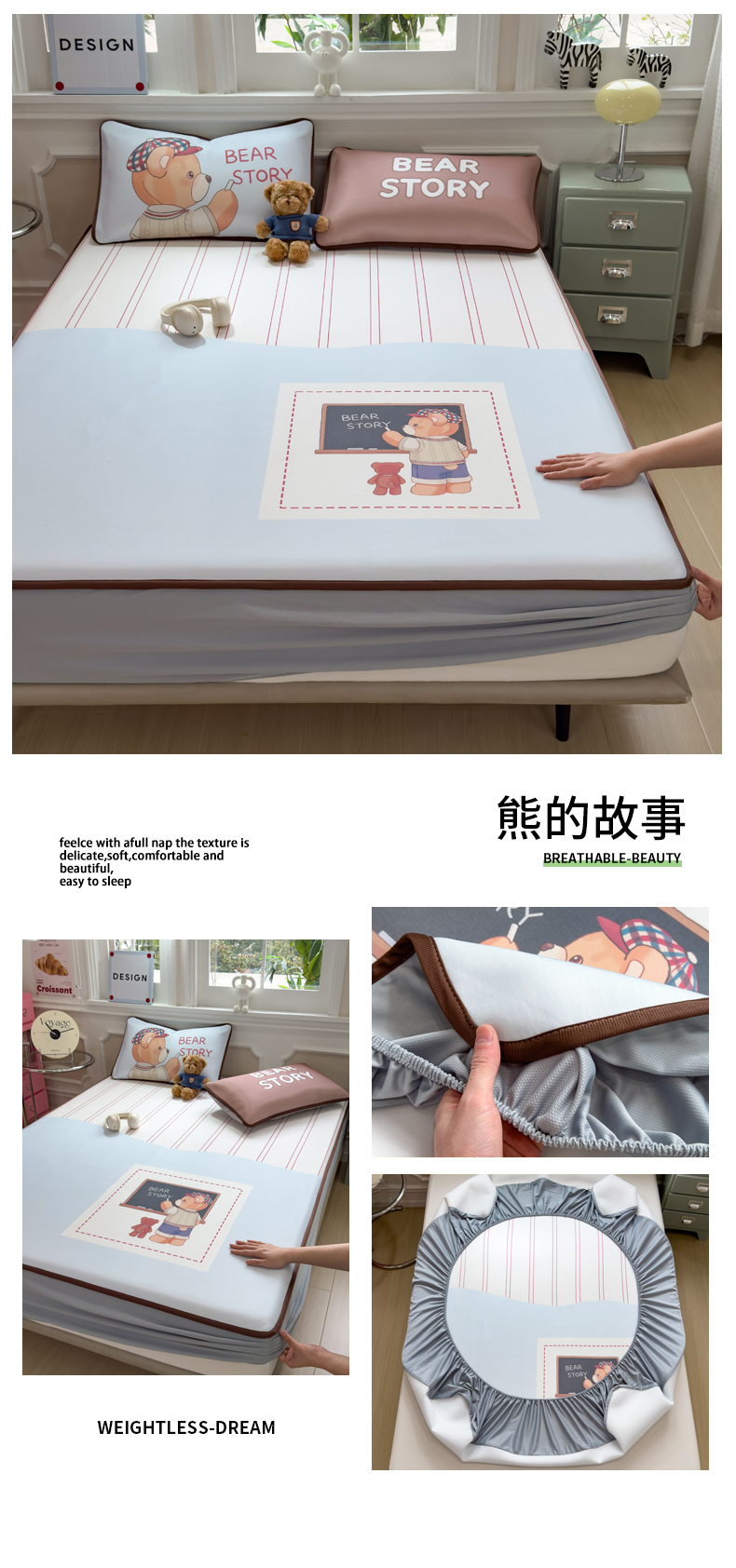 商品名称:丝羽坊 2026新款ins设计师原创大版小清新卡通冰皮复合软凉席 熊的故事-床笠款