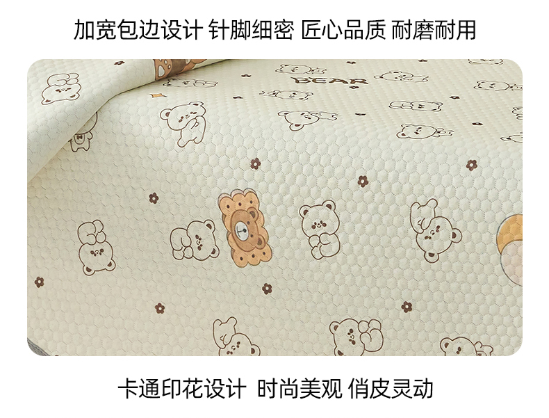 当前位置: 91家纺网 > 商品网购 > 床上用品 > 凉席 > 家品罗兰 2026新款A类母婴级卡通婴儿凉感冰豆豆凉席儿童新生小宝宝床幼儿园床拼接床冰丝席床单垫可机洗夏空调席 饼干熊【三明治透气网底】