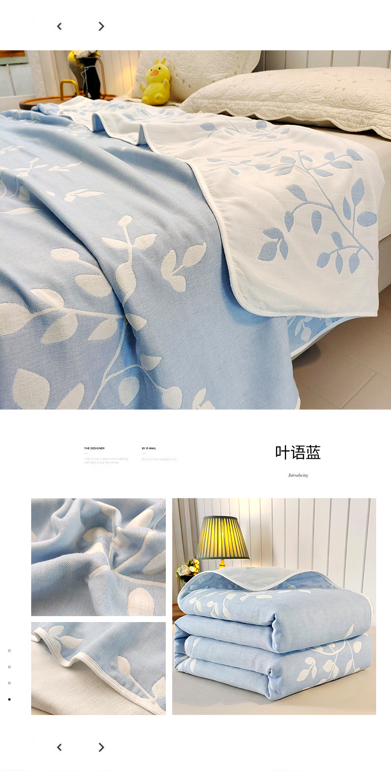 商品名称:静缘分 2026新款全棉纯棉6层纱布毛巾被纯棉六层纱布毯 叶语蓝