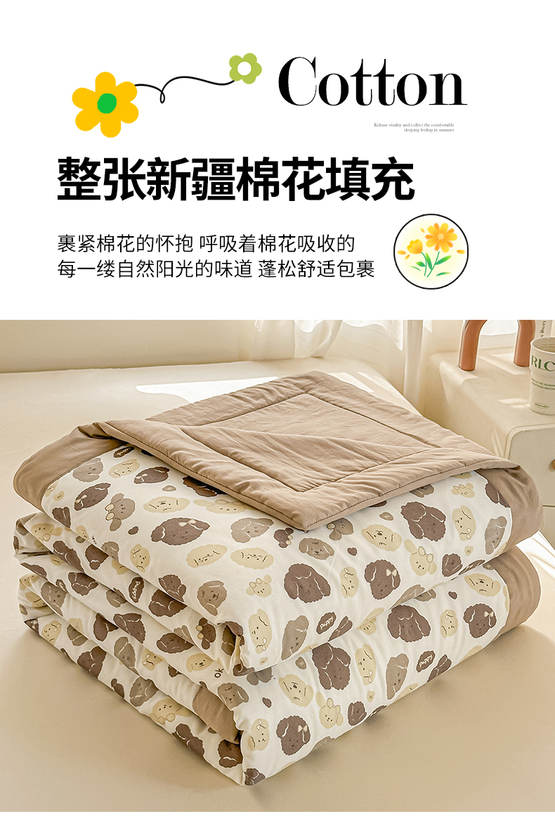 商品名称:晓时候 2026新款小清新印花夏被夏凉被空调被新疆棉花被被子被芯 开心小狗