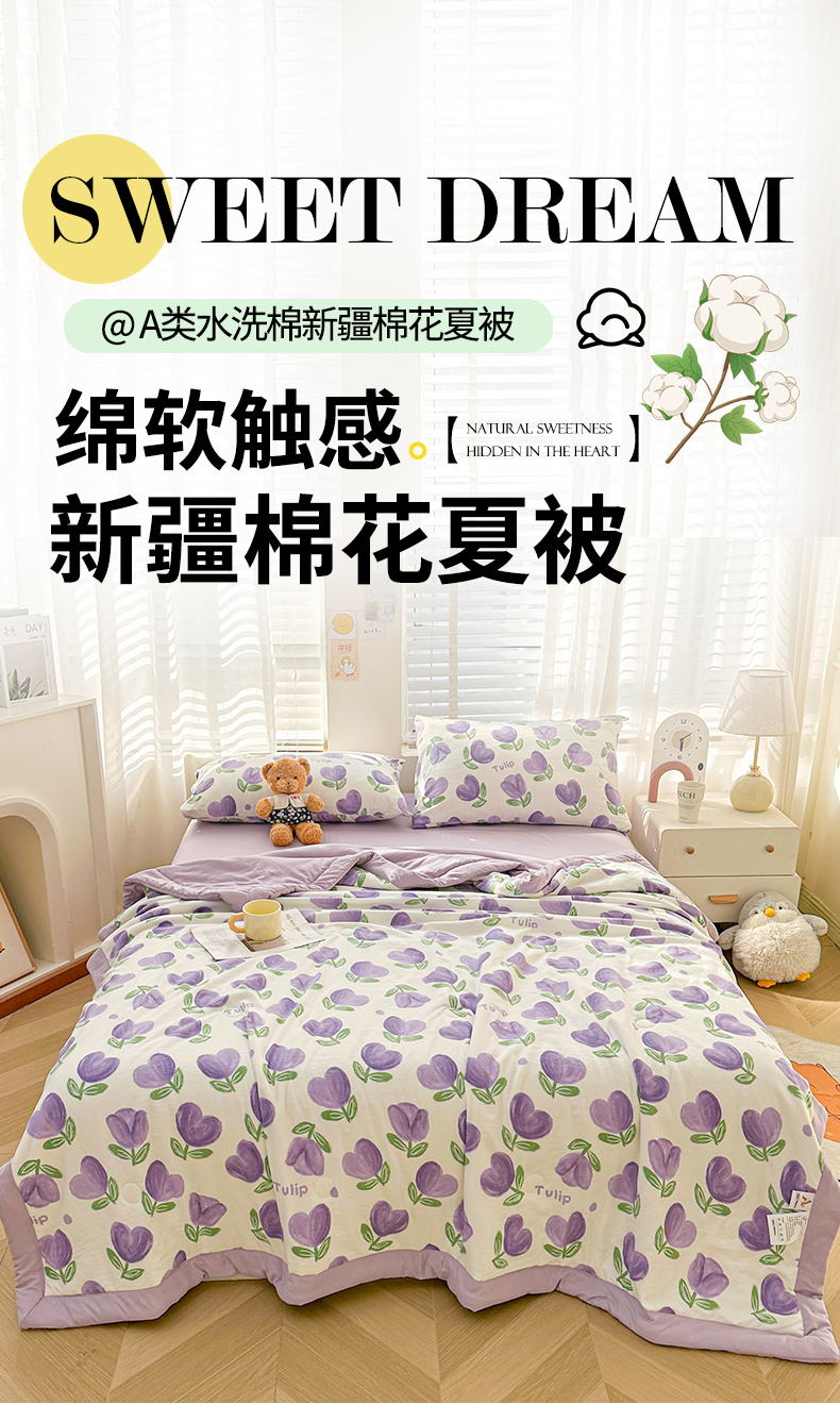 (总)晓时候 2026新款水洗棉夏被新疆棉花被印花夏凉被空调被薄被子,小熊院长,呆萌企鹅,滑板萌狗,黄油小熊,卡皮巴拉,开心小狗,恐龙乐园,曼塔玫瑰,清新小花,森林茶会,夏日风情,心想事橙,熊猫派对,郁金香-紫
