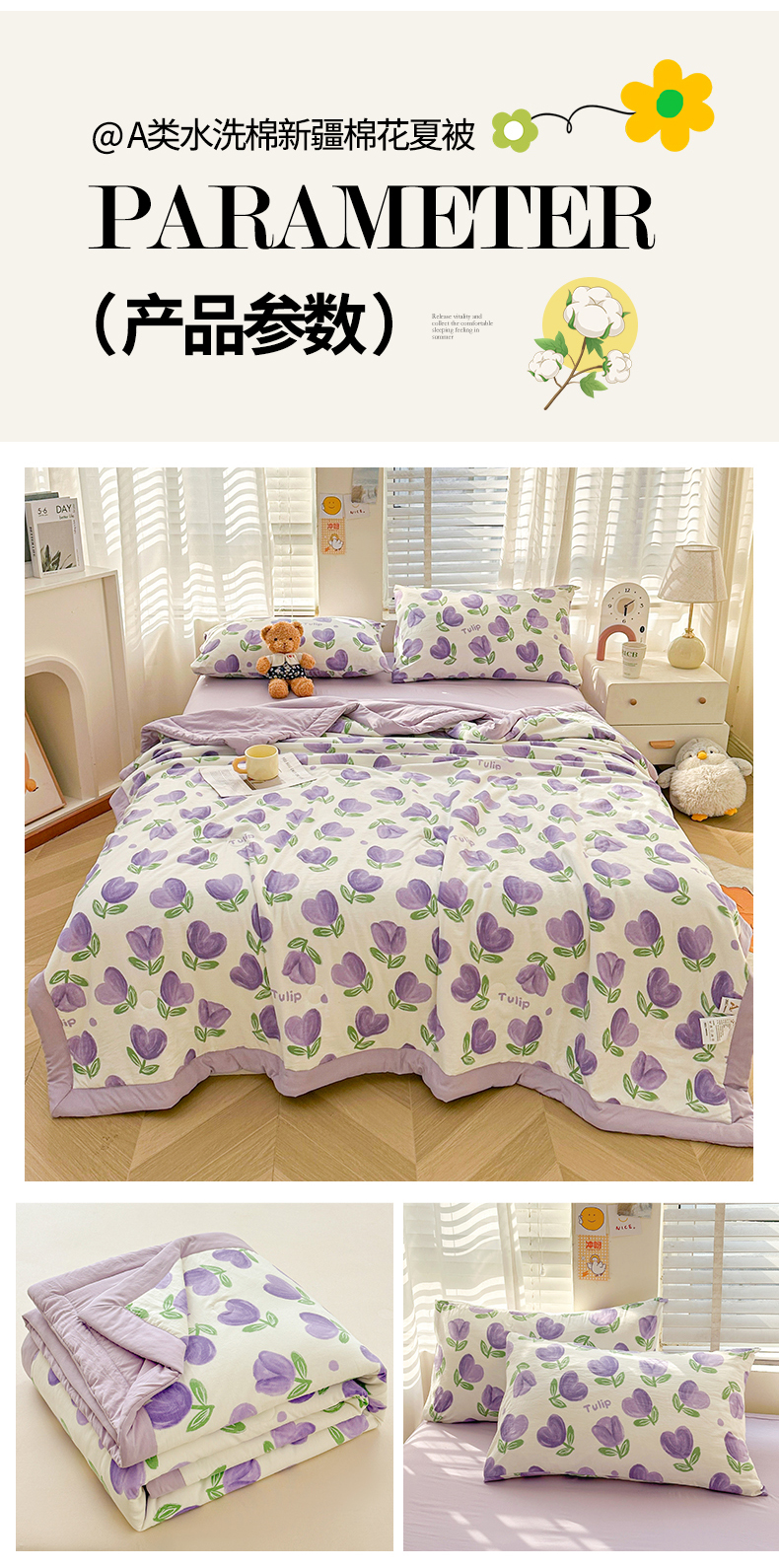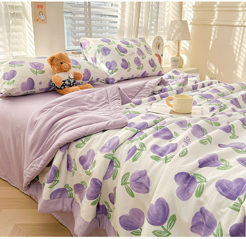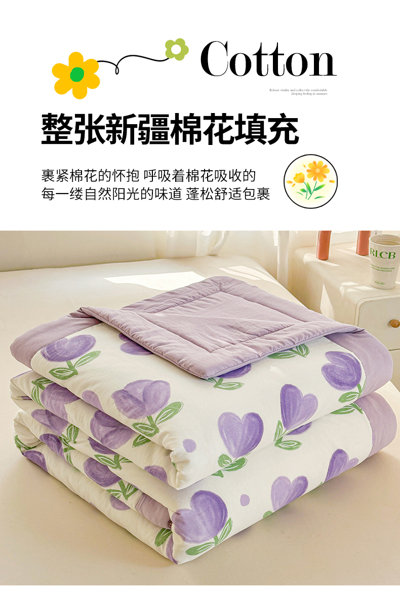 商品名称:晓时候 2026新款小清新印花夏被夏凉被空调被新疆棉花被被子被芯 郁金香紫