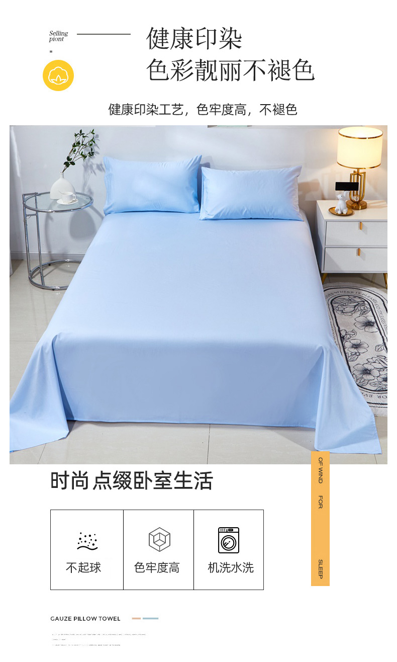 晶缦家纺 2026新款喷气A类全棉13376纯棉斜纹纯色单床单单品床单床单单件 沐朗-天蓝