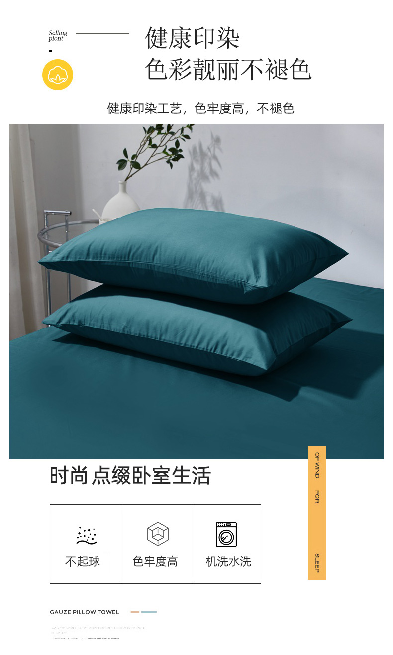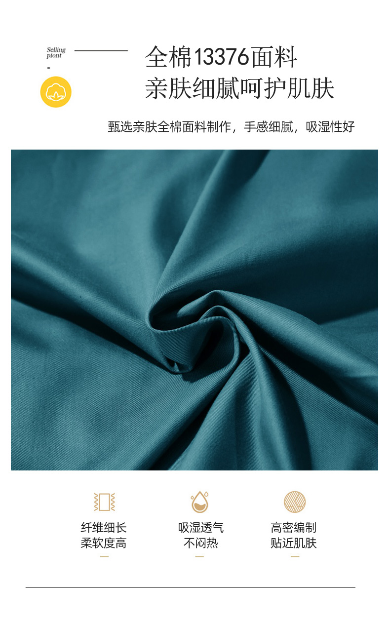 商品名称:晶缦家纺 2026新款喷气A类全棉13376纯棉斜纹纯色单枕套单品枕套枕套单件 沐朗-孔雀绿