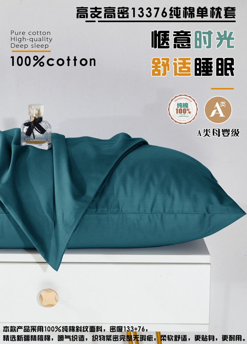晶缦家纺 2026新款喷气A类全棉13376纯棉斜纹纯色单枕套单品枕套枕套单件 沐朗-孔雀绿