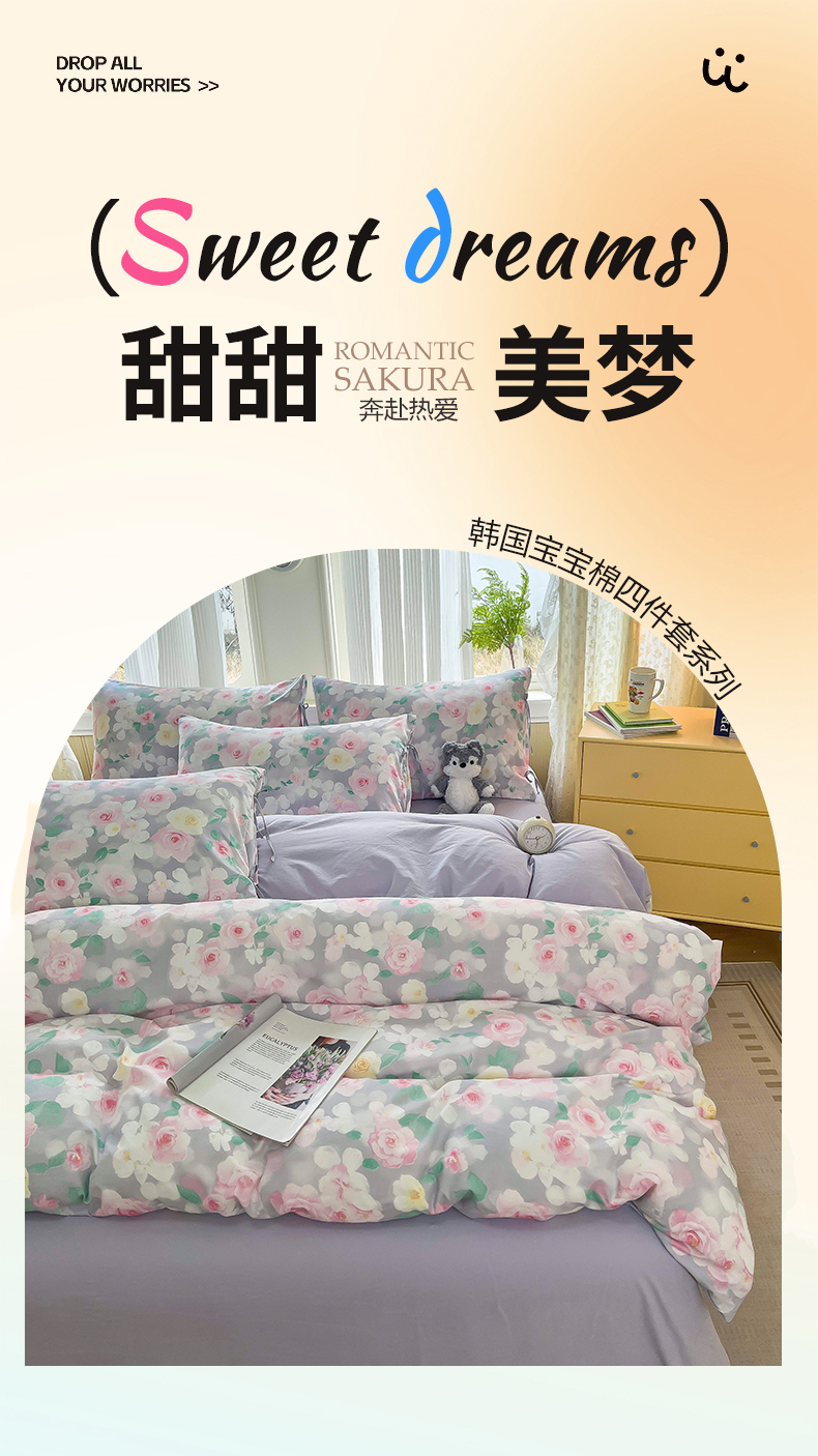当前位置: 91家纺网 > 商品网购 > 床品套件 > 四件套 > 其它四件套 > 帛洵家纺 2026新款110g超柔水洗宝宝有氧仿棉四件套(提供买家秀) 惬意午后-粉
