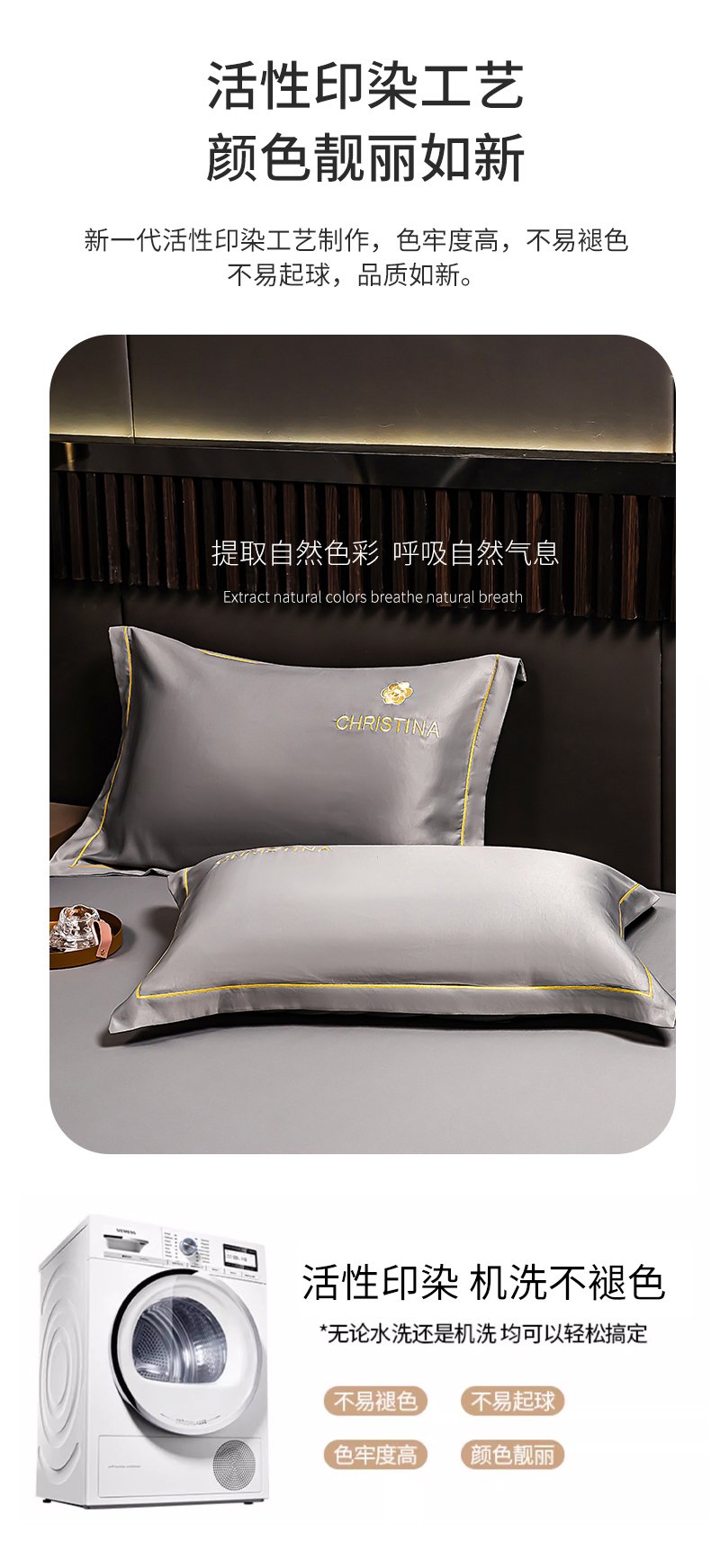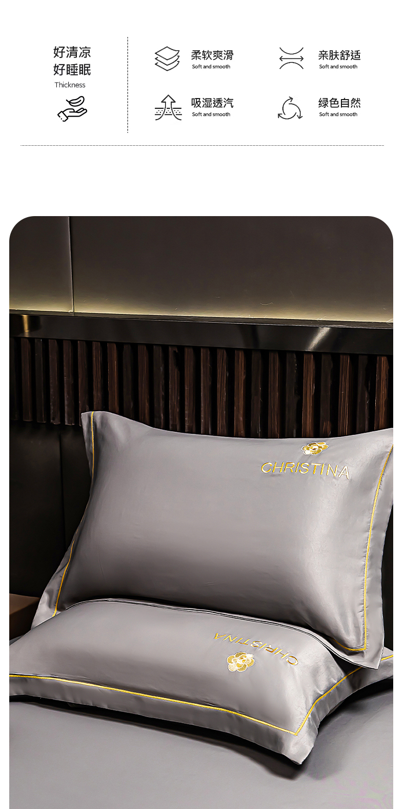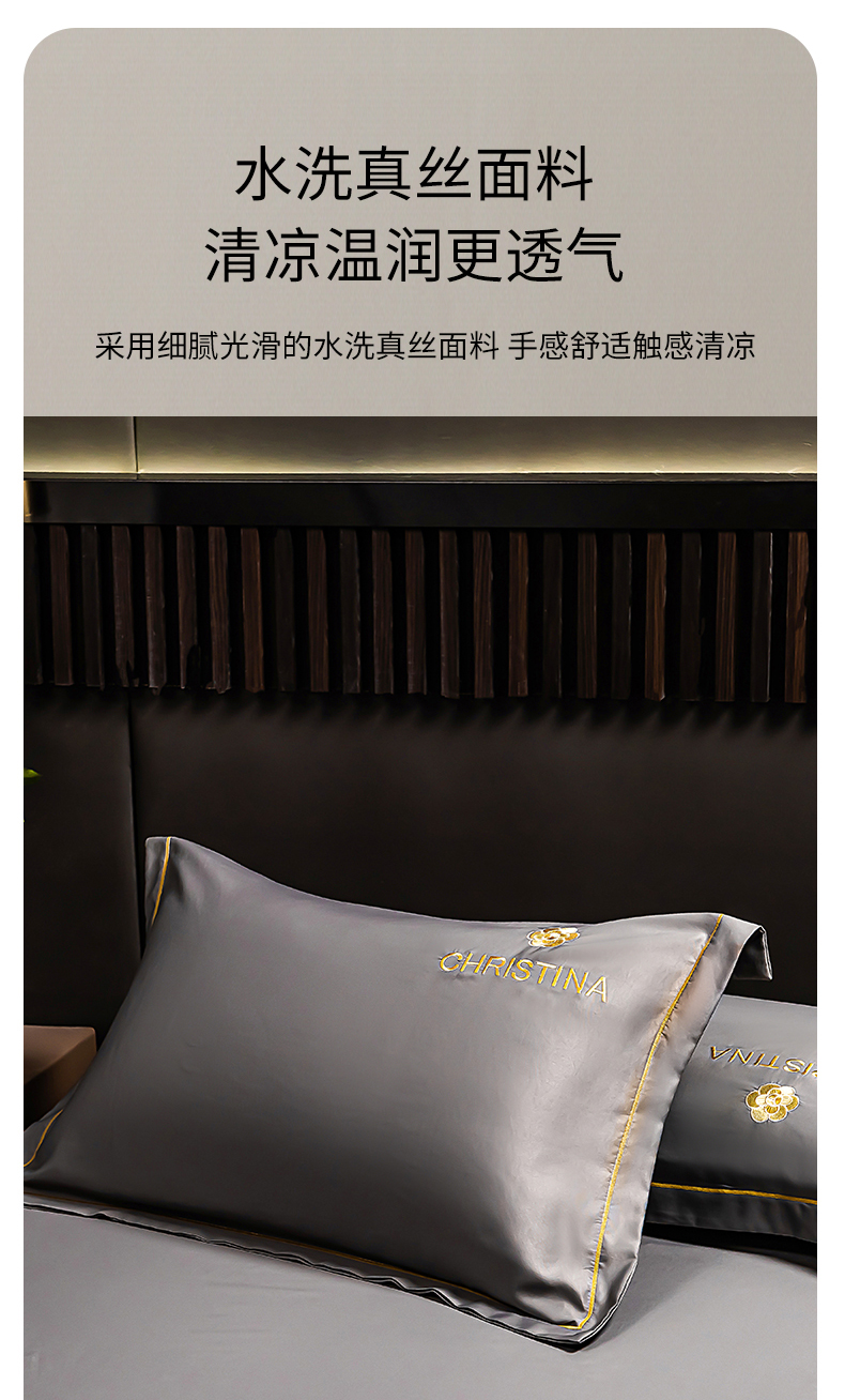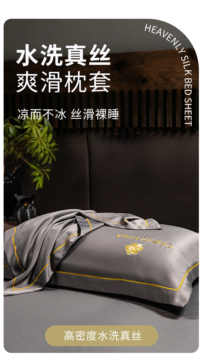 商品名称:丽美人家纺 2026新款凉感水洗真丝枕套-山茶花系列 山茶花-灰色