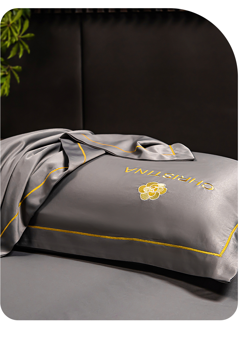丽美人家纺 2026新款凉感水洗真丝枕套-山茶花系列 山茶花-灰色
