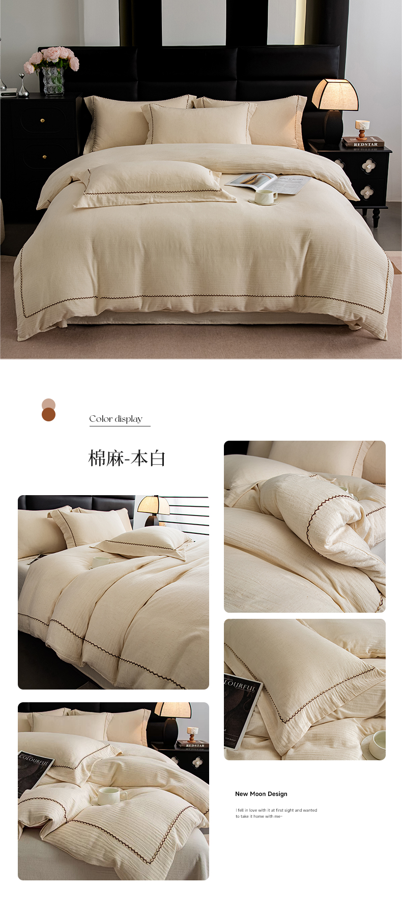 (总)慕梵家居 2026春夏新款全棉棉麻简约纯色系列四件套-棉麻