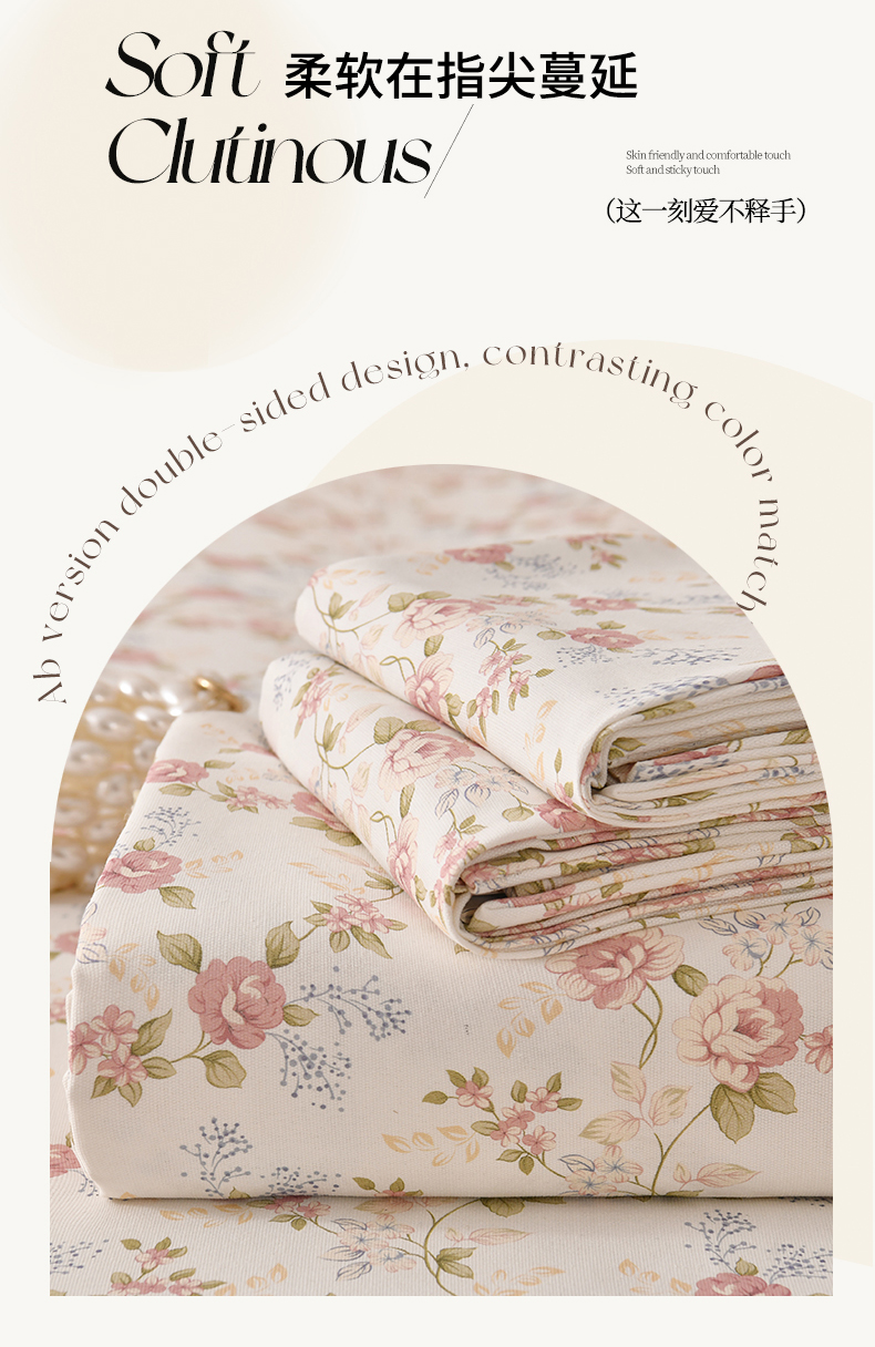 • 91家纺网 家纺一手货源 找家纺 悠米悠家 2026新款工艺款印花老粗布床单单品床单床单单件凉席席子 紫雾缠枝玫