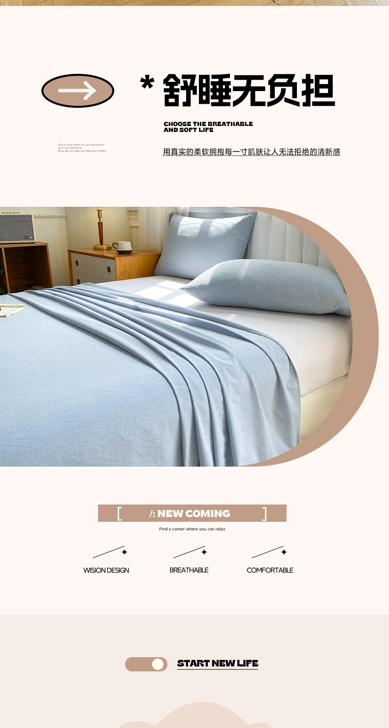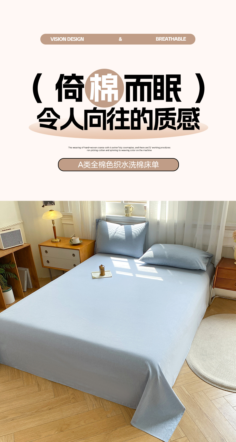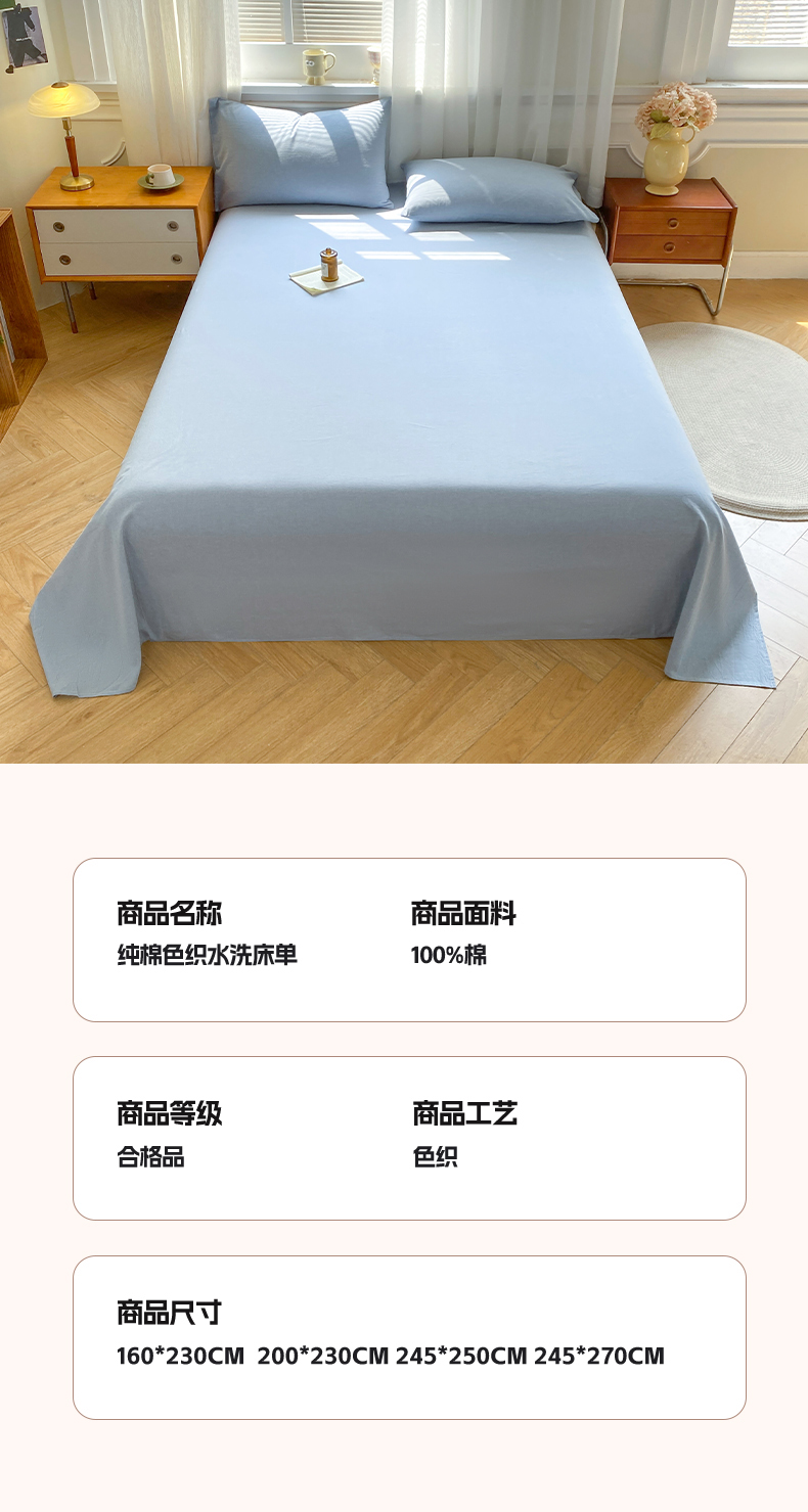 • 91家纺网 家纺一手货源 找家纺 恋人优选 2026新款全棉纯棉色织床单单床单床单单件 浅蓝