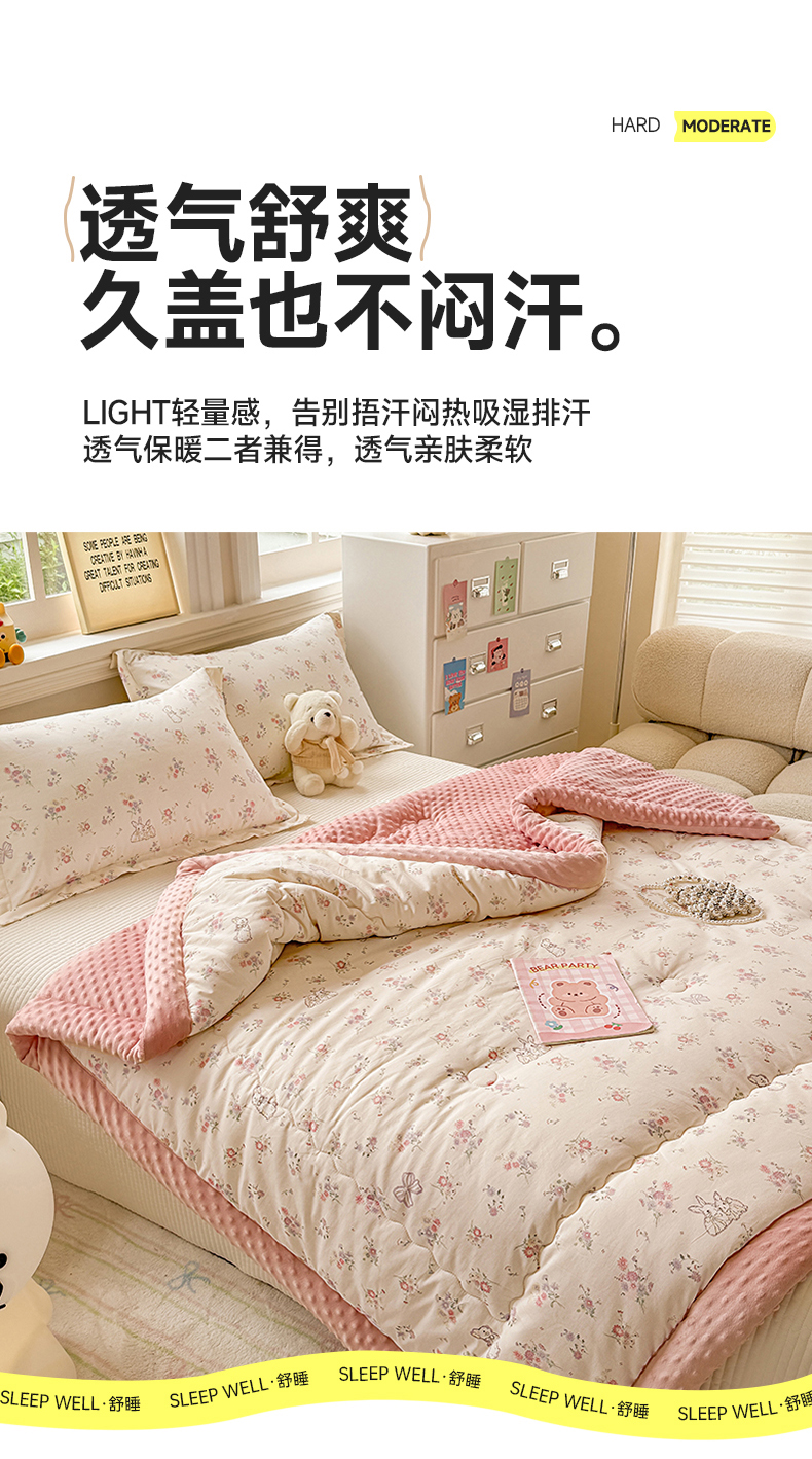 • 91家纺网 家纺一手货源 找家纺 梦依依 2026新款柔软舒适A类全棉豆豆被夏被春秋被子被芯 萝莉兔