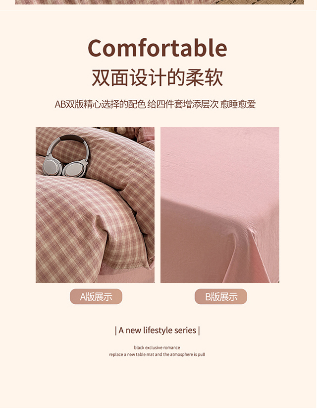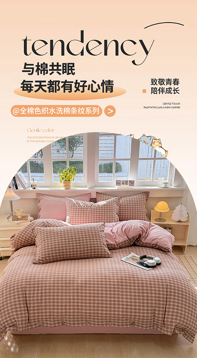 (总)梦依依 2026新款全棉色织水洗棉拉链款四件套,玛丽兰,巴赫兰,琥珀红,琥珀灰,浣花粉,蓝细条,蓝小格,玛丽绿,木槿黑,木槿咖,柠檬卡其,晚晴红,云岫兰咖,云岫绿咖