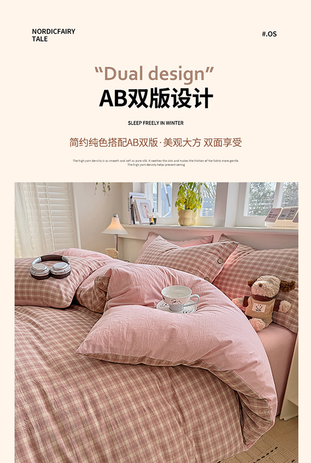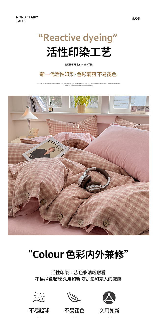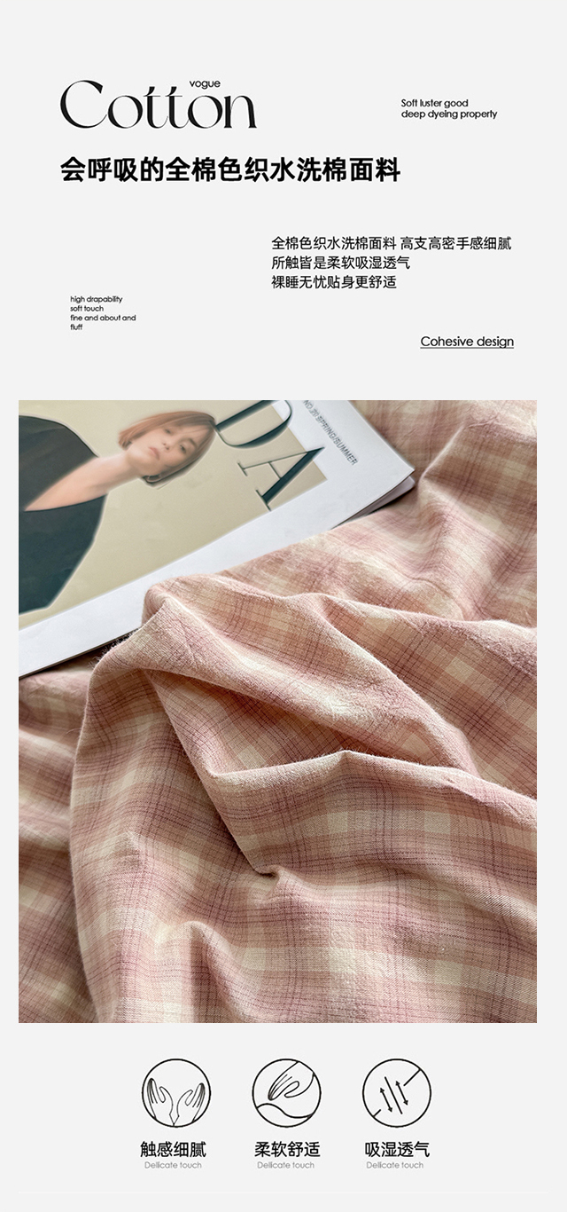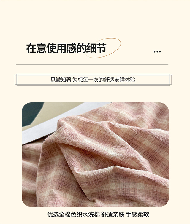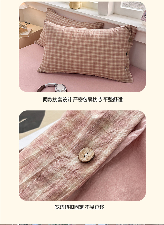 商品名称:梦依依 2026新款A类全棉色织水洗棉纯棉格子钮扣款四件套学生宿舍三件套 浣花
