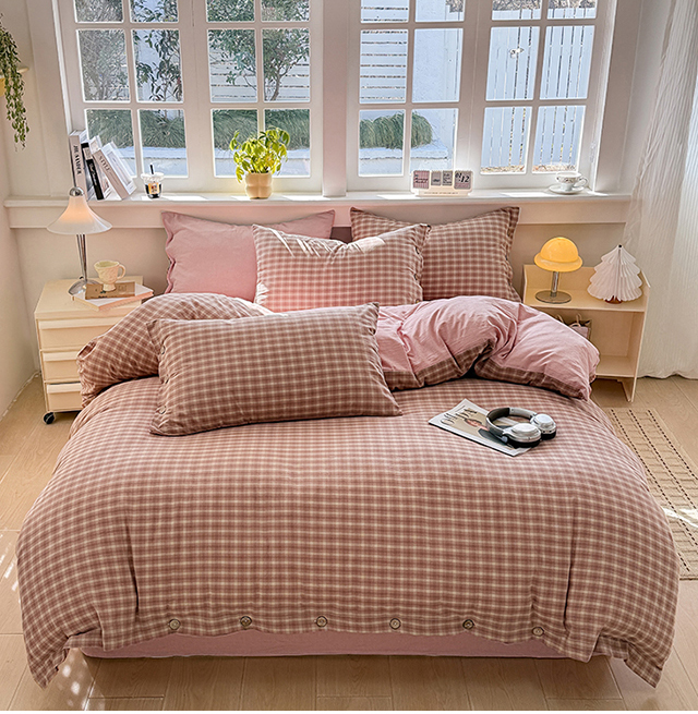 梦依依 2026新款A类全棉色织水洗棉纯棉格子钮扣款四件套学生宿舍三件套 浣花