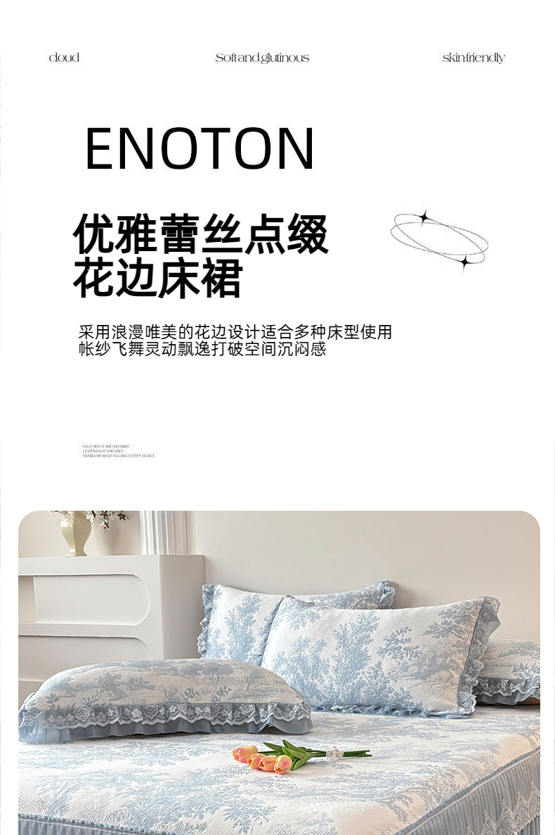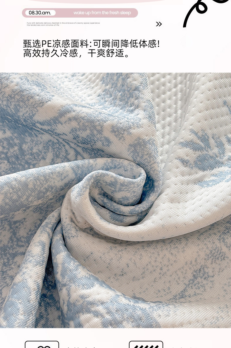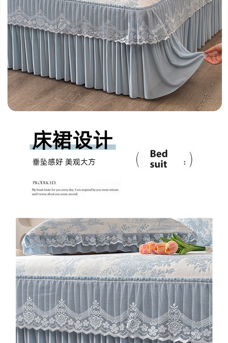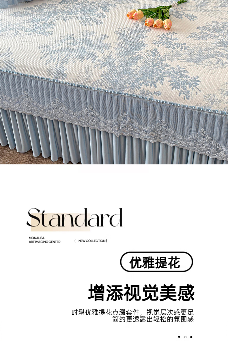 金艾草 2026新款PE双面提花床裙凉席三件套 清新-蓝色