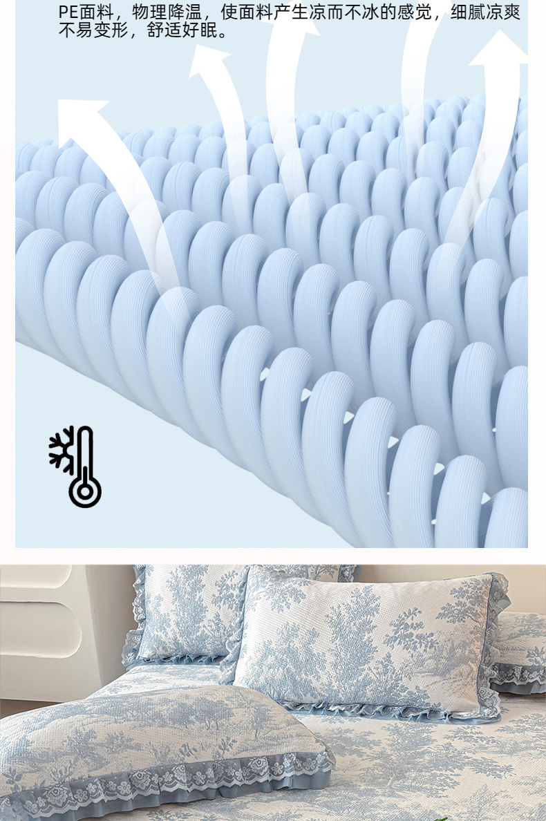 商品名称:金艾草 2026新款PE双面提花床裙凉席三件套 清新-蓝色