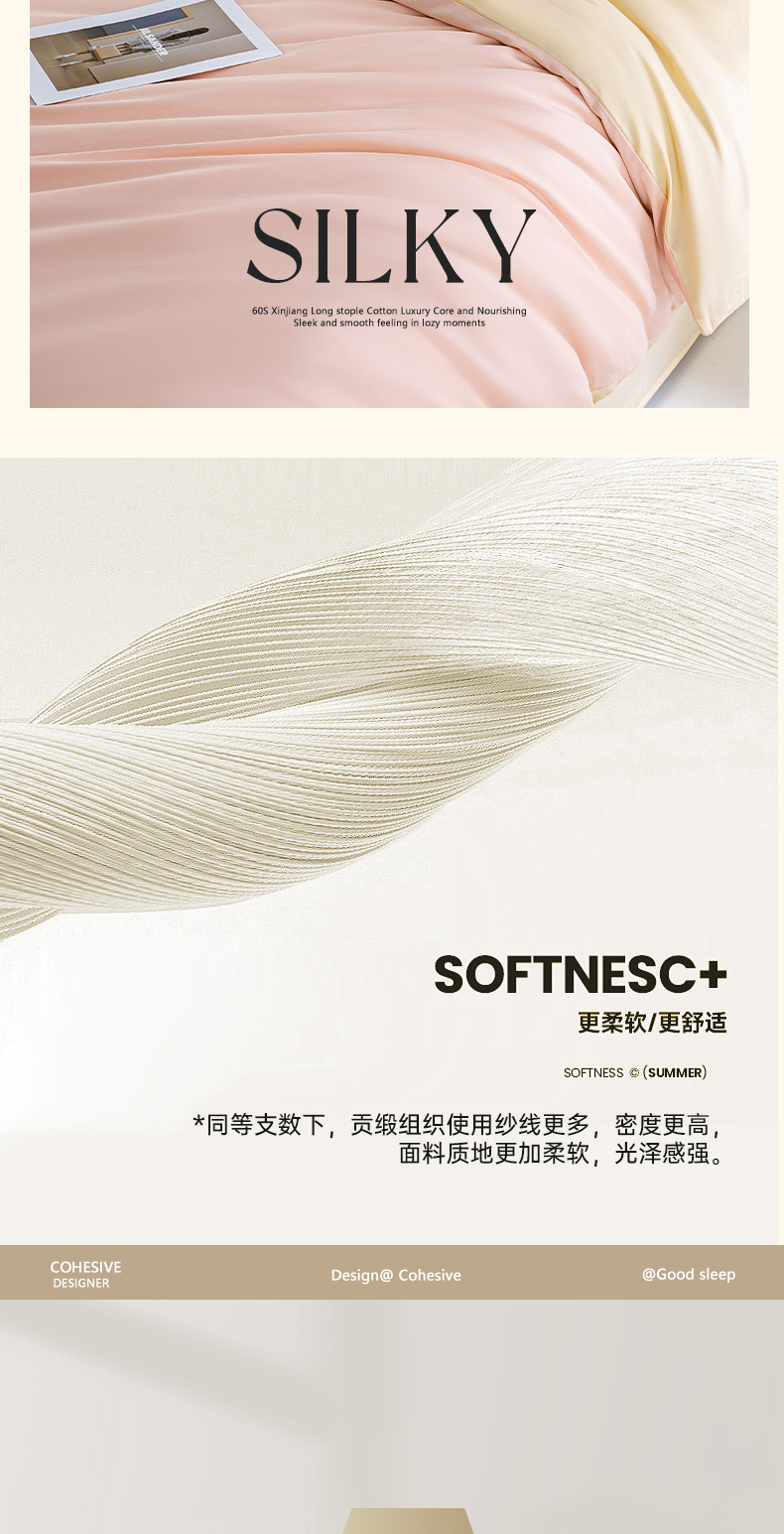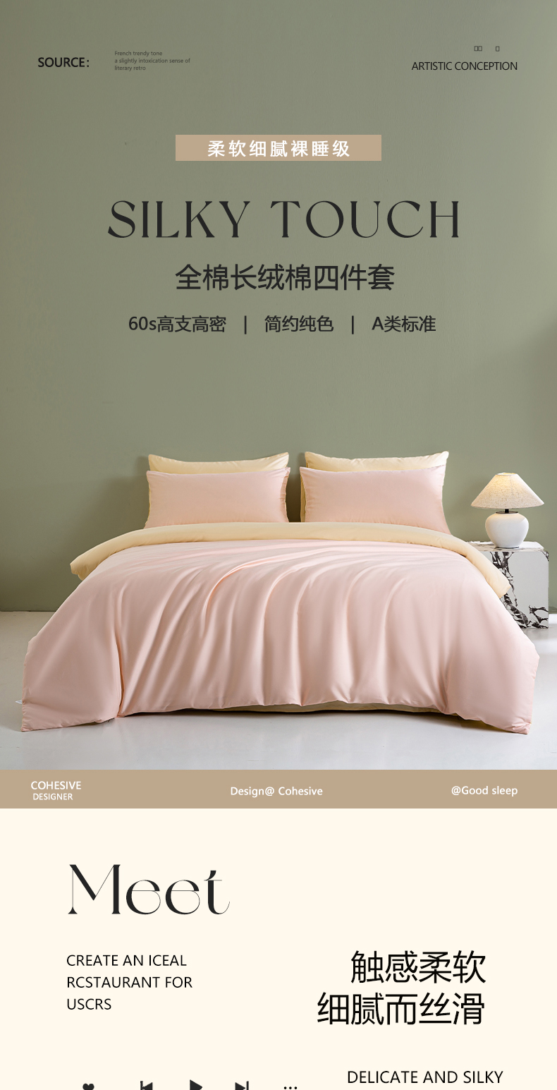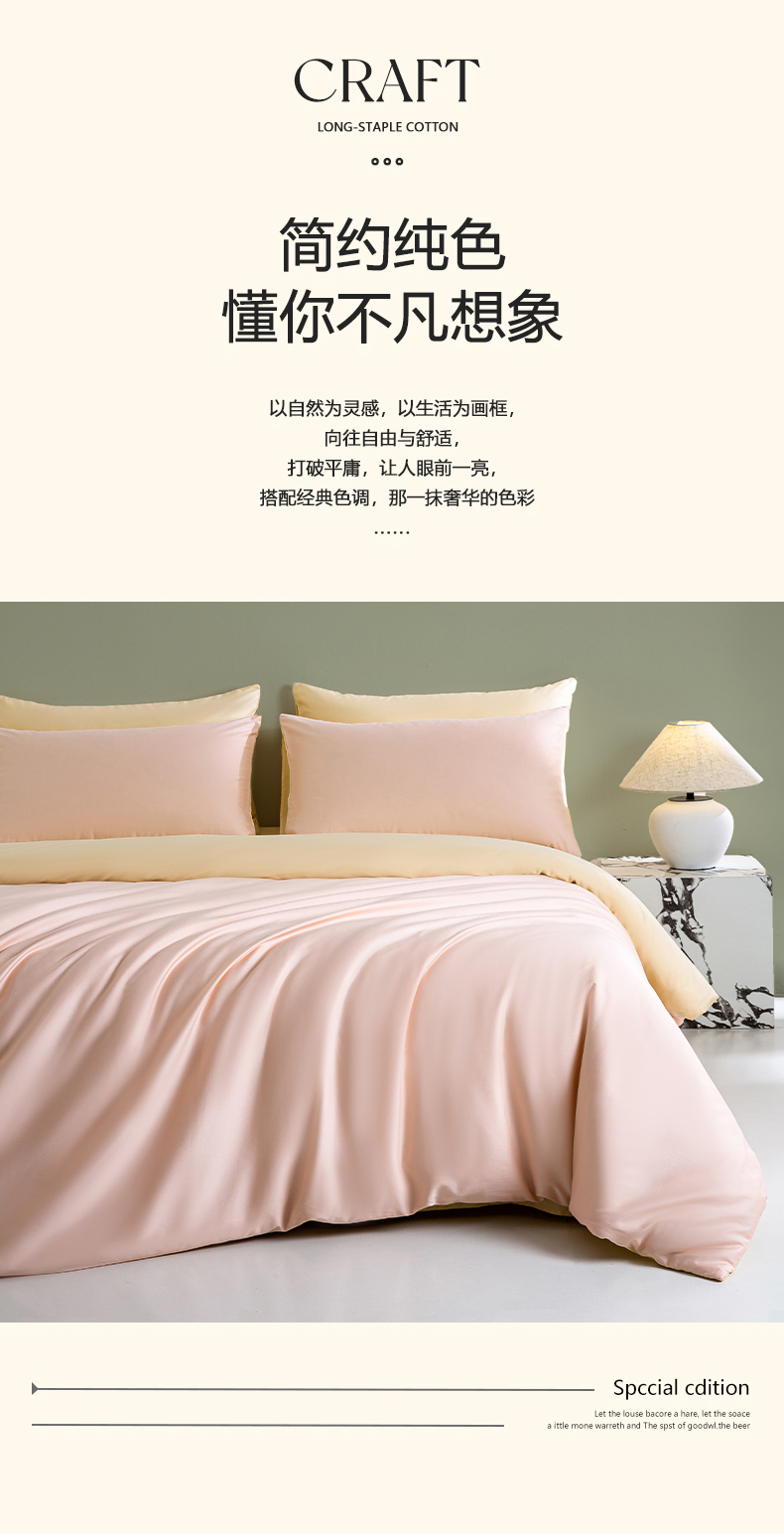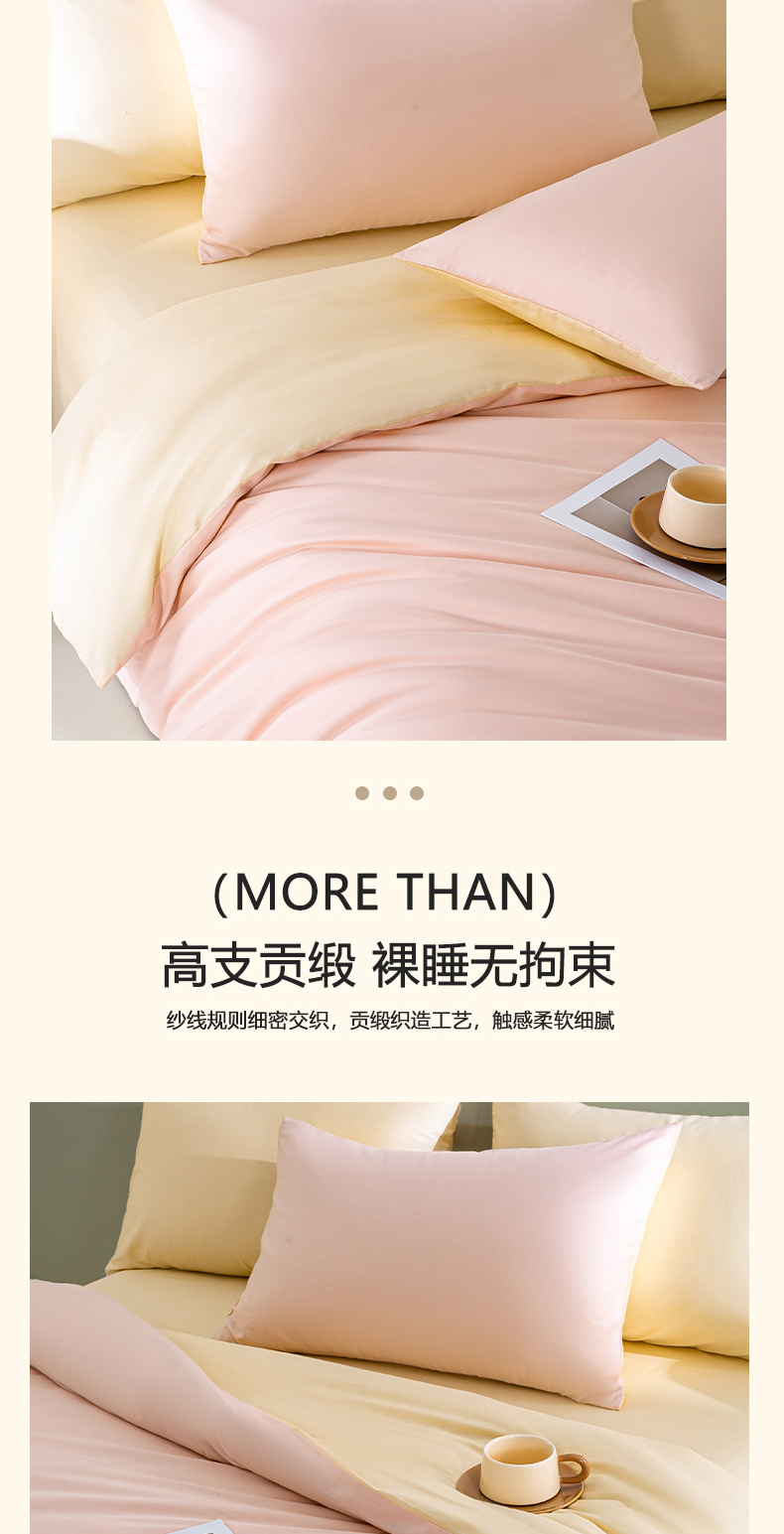 当前位置: 91家纺网 > 商品网购 > 床品套件 > 四件套 > 全棉普通四件套 > 憨豆家纺 2026新款全棉60s四件套纯色贡缎纯棉被套床笠款三件套长绒棉被套 樱花粉+奶昔白
