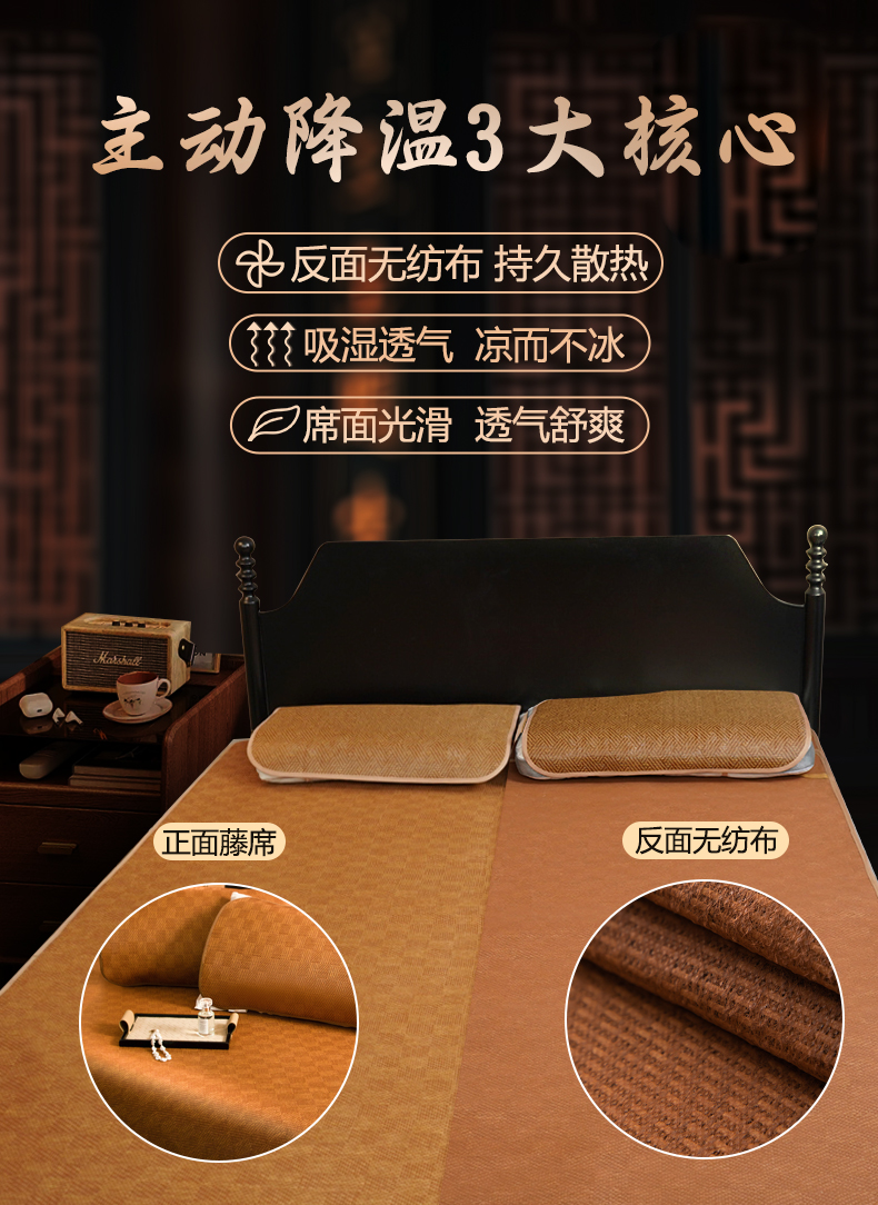 (总)步步高席业 2026新款夏季高端高分子PE凉感席刺绣凉席,PE凉感刺绣凉席
