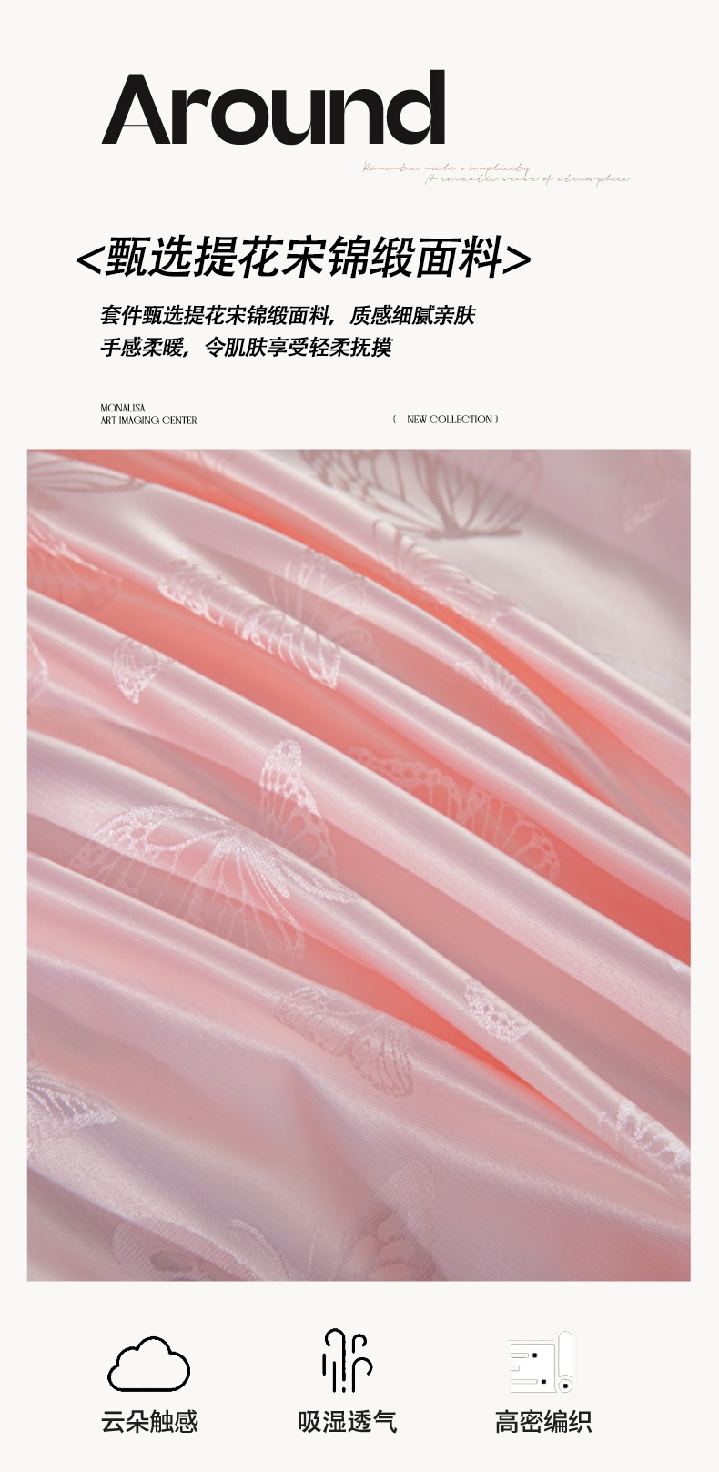 当前位置: 91家纺网 > 商品网购 > 床品套件 > 四件套 > 水洗真丝四件套 > 畅畅家纺 2026春夏新款高档轻奢水洗真丝提花四件套夏天纯色床单床笠 蝶之恋-雅玉