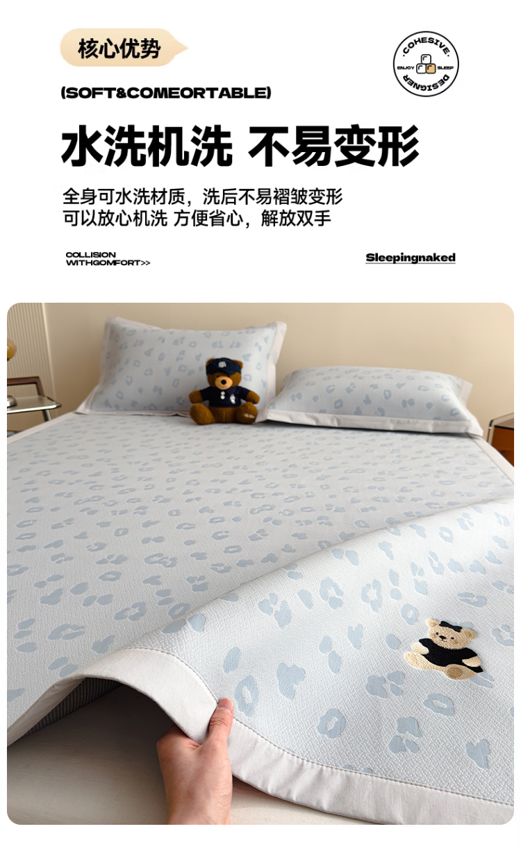 当前位置: 91家纺网 > 商品网购 > 床上用品 > 凉席 > 凉席套件 > 孩子王家纺 2026春夏新款A类母婴级ins清新冰豆豆小熊刺绣凉感值过0.21夏季冰丝席凉席 小熊豹豹-咖 床单款
