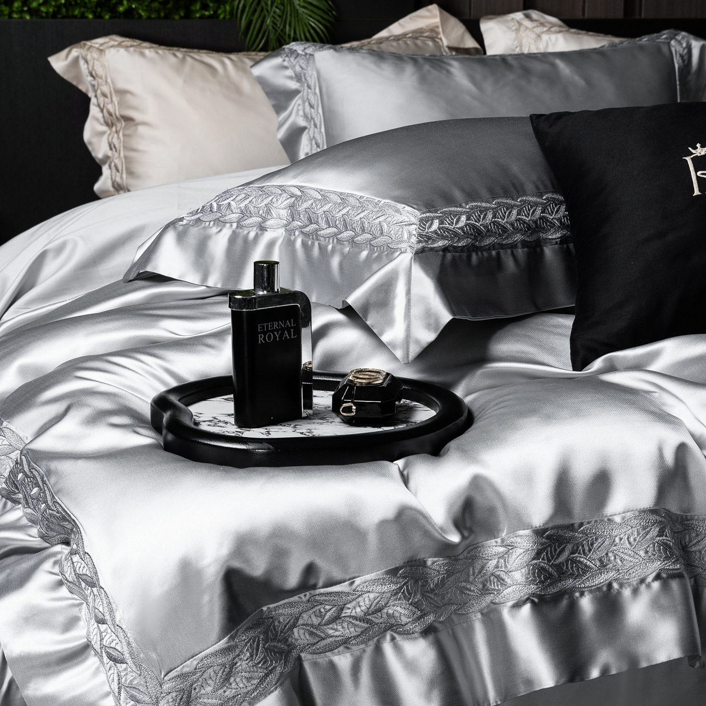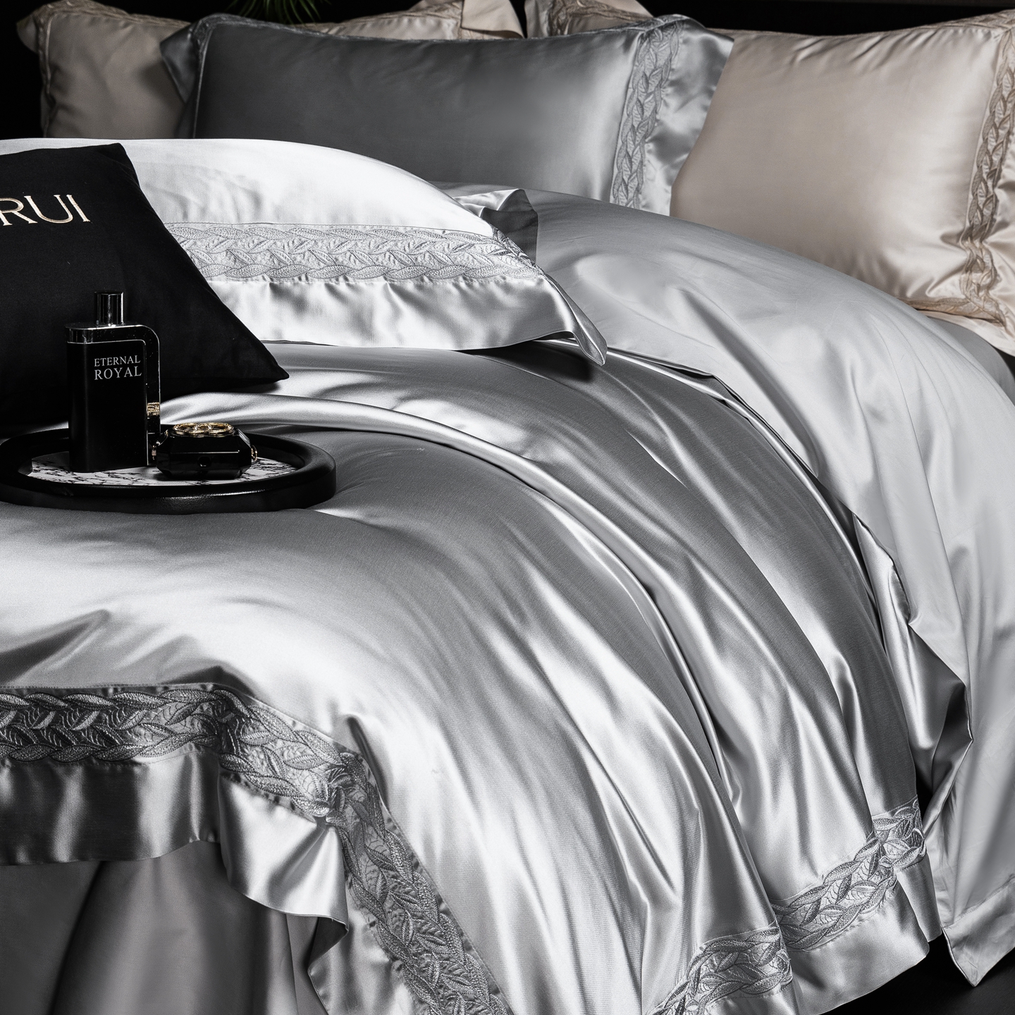 商品名称:馨蕊家居 2026春夏新款款100s全棉纯棉高精密四件套-米娅 米娅-高级灰