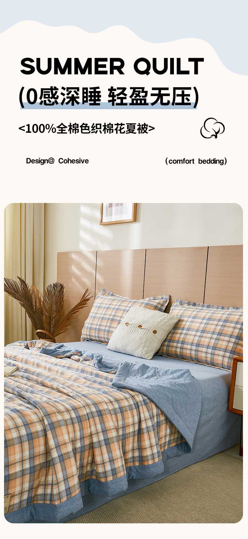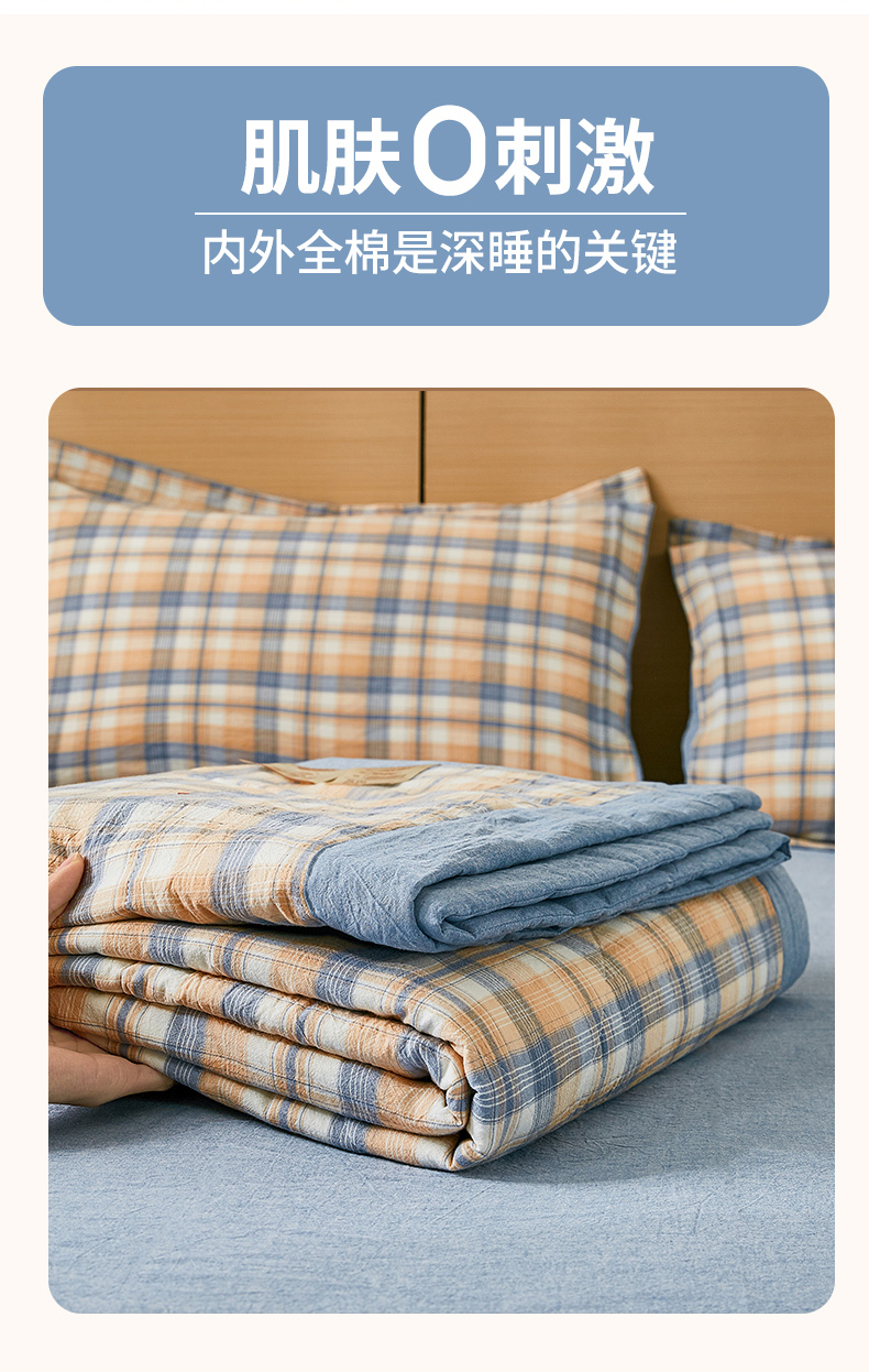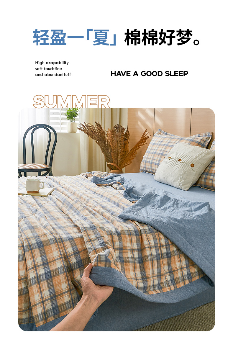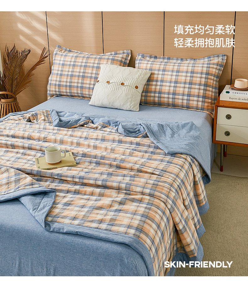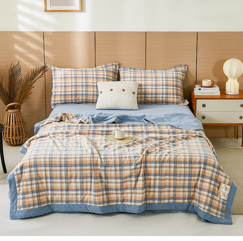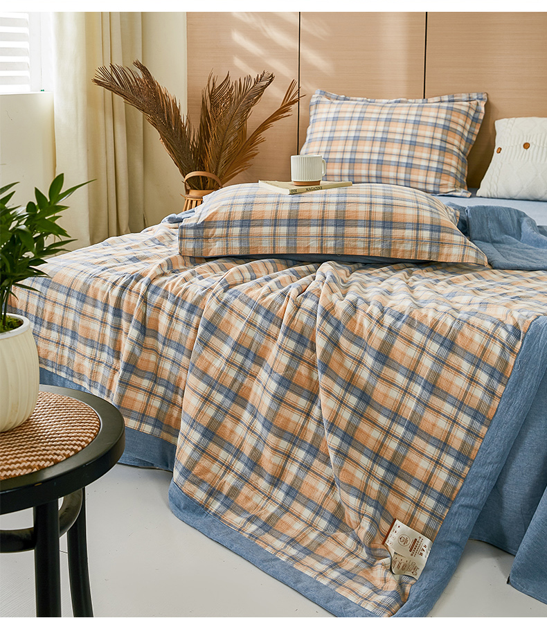 81号家纺 2026新款全棉纯棉色织棉花夏被夏凉被空调被 蓝调格