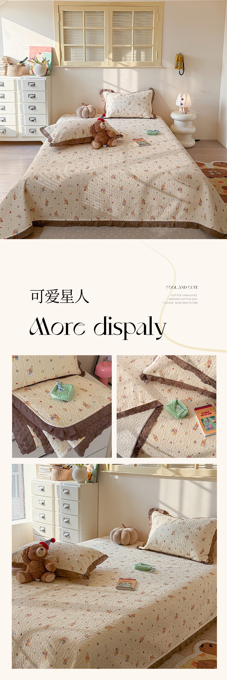 (总)乐野家居 2026新款印花全棉有氧双层纱床盖三件套,组合图仅供展示不可下单,白桃乌龙,波点童话,伯爵茶歇,红格摇摇马,焦糖樱桃,可爱星人,快乐动物城,塞纳暮烟,紫萝织梦