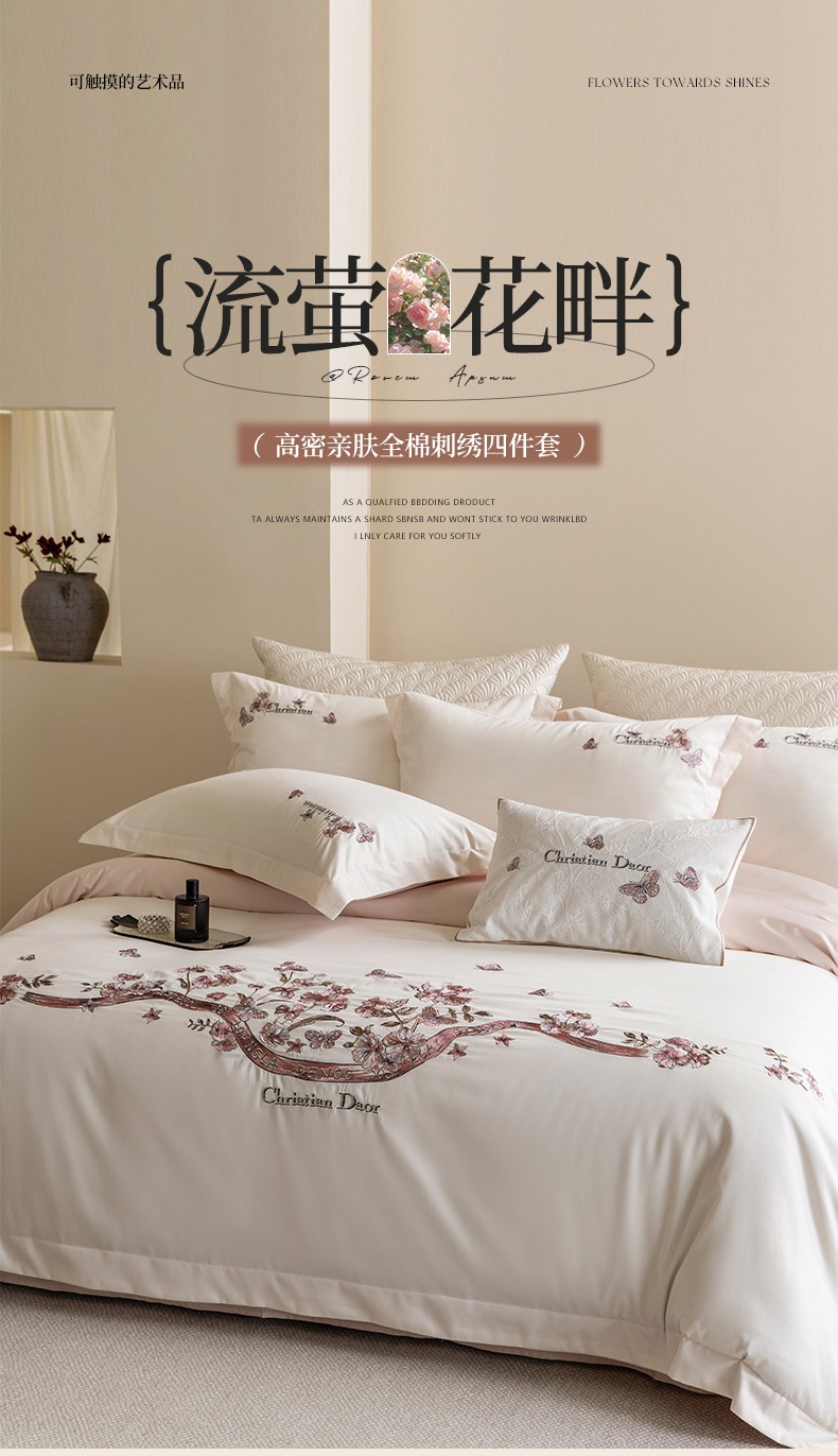 (总)优悦生活馆 2026新款高密亲肤全棉新疆长绒棉刺绣四件套-流萤花畔