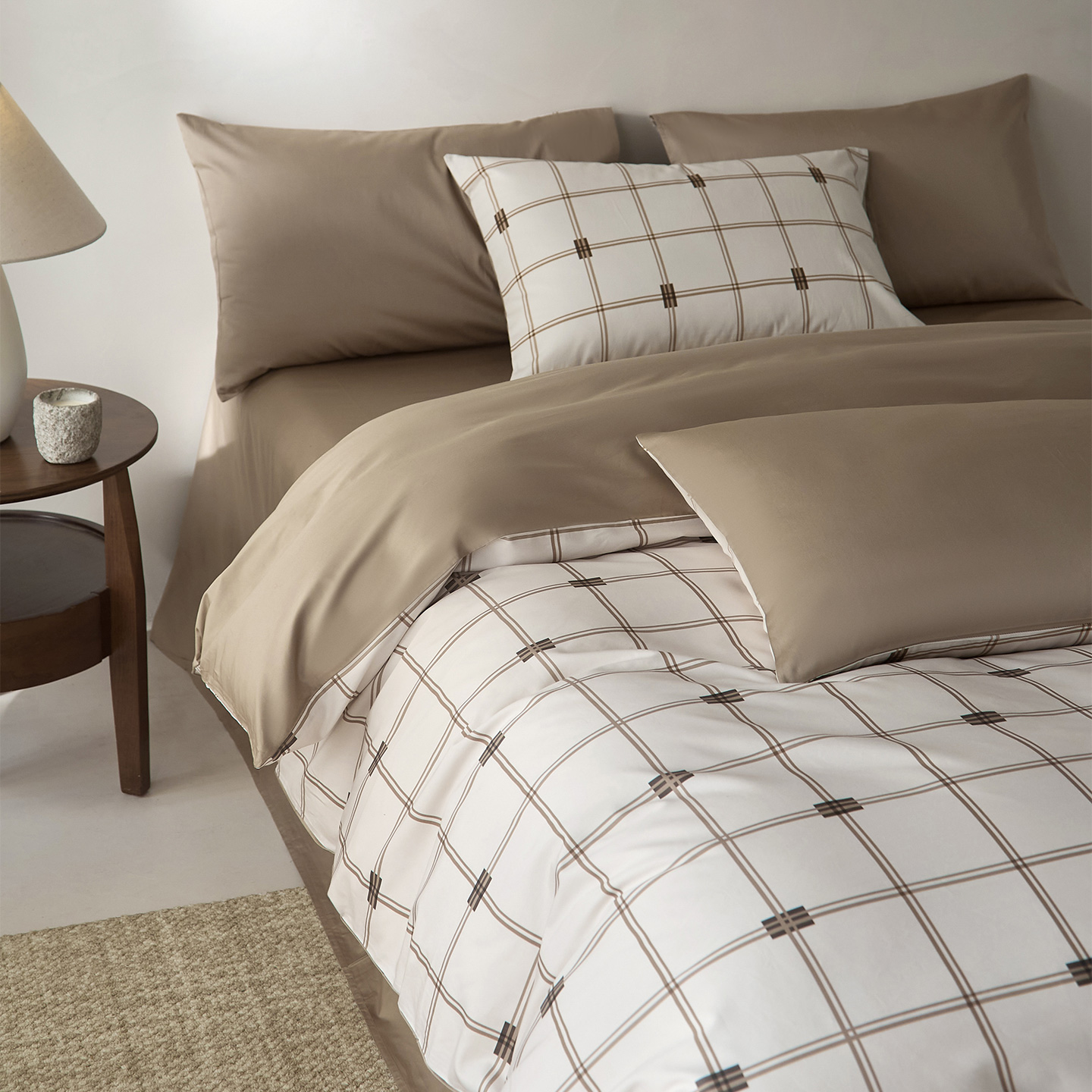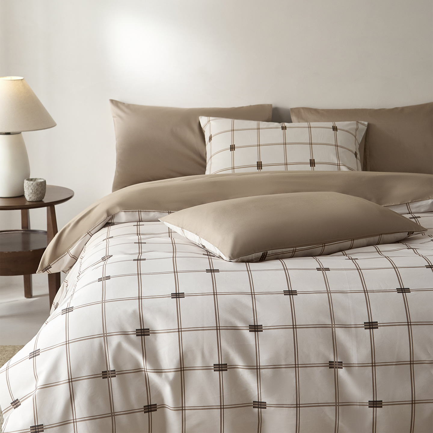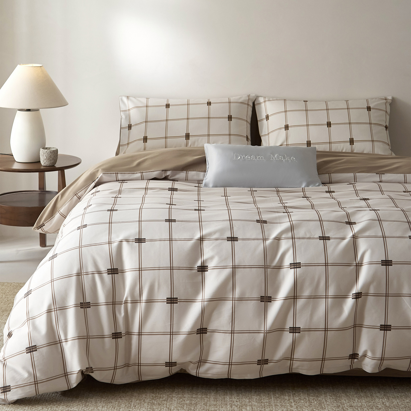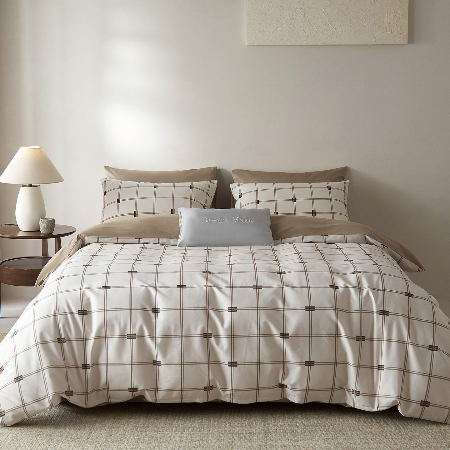 当前位置: 91家纺网 > 商品网购 > 床品套件 > 四件套 > 全棉普通四件套 > (总)ONE TWO ONE 121 2026新款专版数码印花100s长绒棉纯棉全棉床上用品四件套-罗曼格纹-金