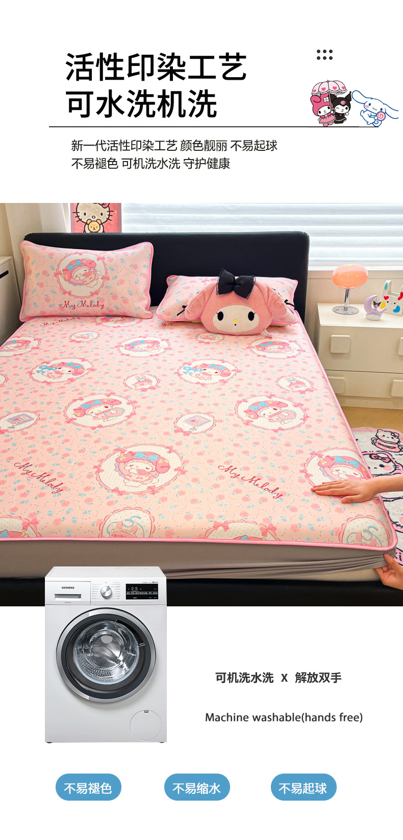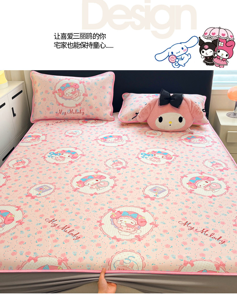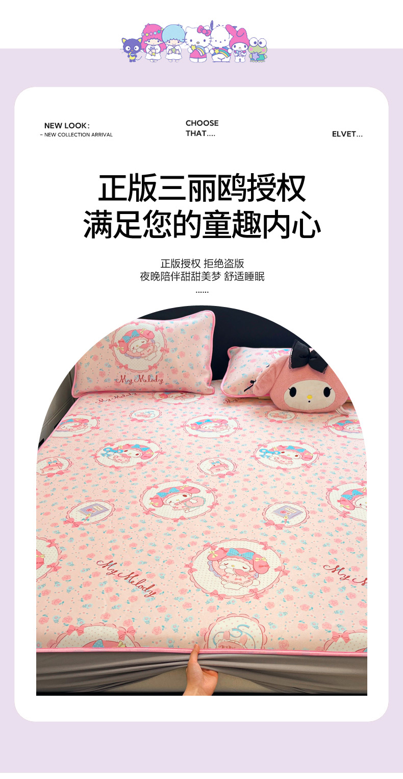 当前位置: 91家纺网 > 商品网购 > 床上用品 > 凉席 > 凉席套件 > 暮思家居 2026新款三丽鸥正版授权数码印花A类可机洗1200D冰丝凉席三件套床笠款系列 床笠款-花花美乐蒂