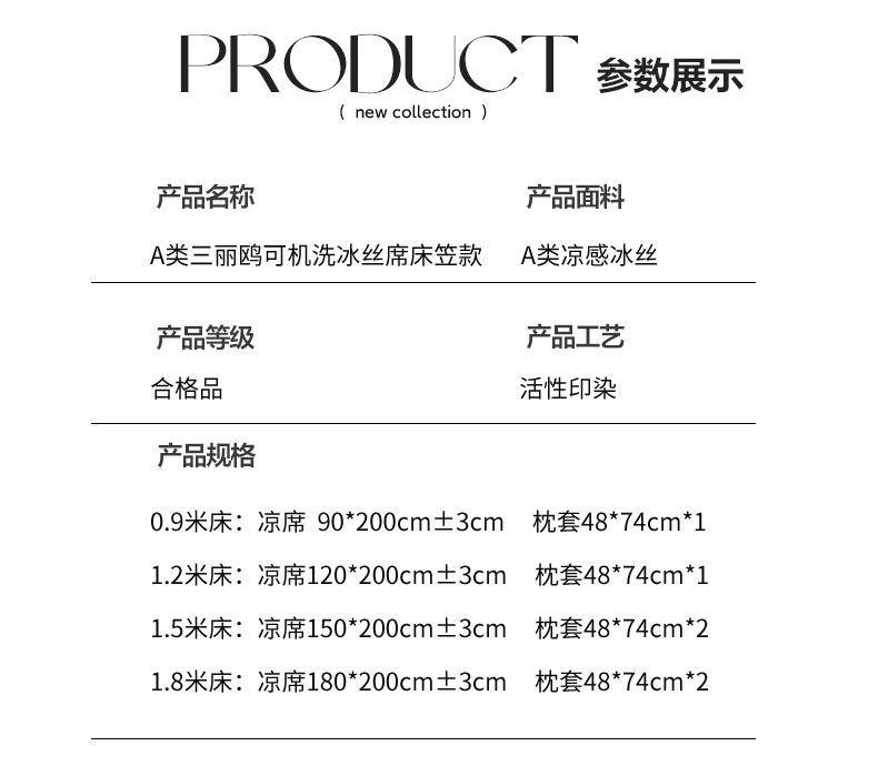 150x200cm凉席+枕套一对 | ¥75.00 |