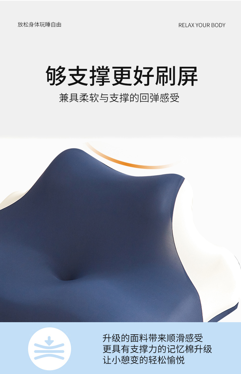 商品名称:珍贝家纺 2026新款跨境出口外贸记忆棉多功能慢回弹趴枕睡眠趴睡枕头枕芯 午睡趴枕-高级灰