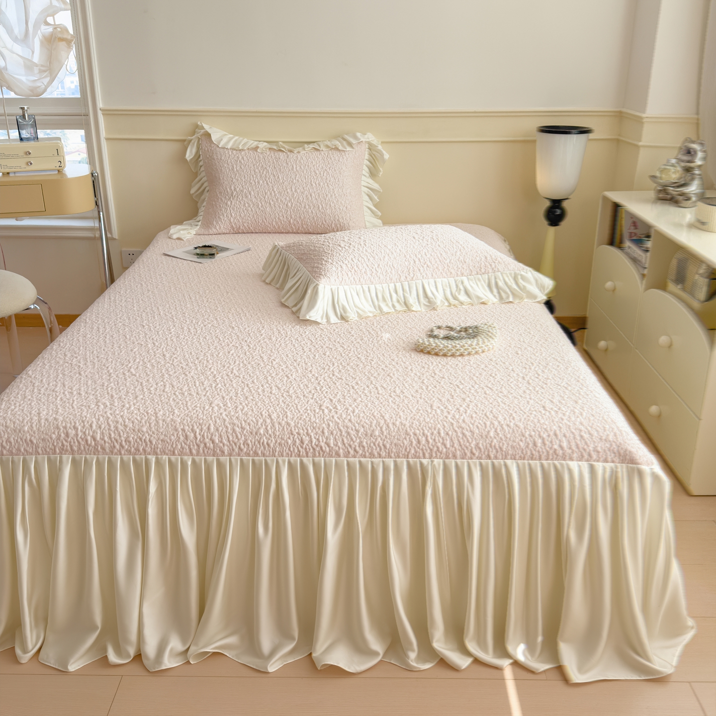 商品名称:孩子王家纺 2026新款夏季凉感公主风冰豆豆花边凉席床裙款凉感值过0.21三件套可机洗冰丝空 豆豆物语-芭蕾粉