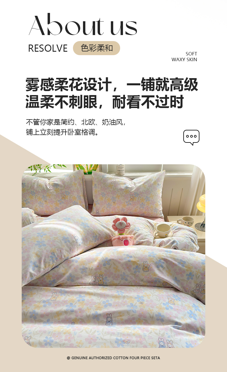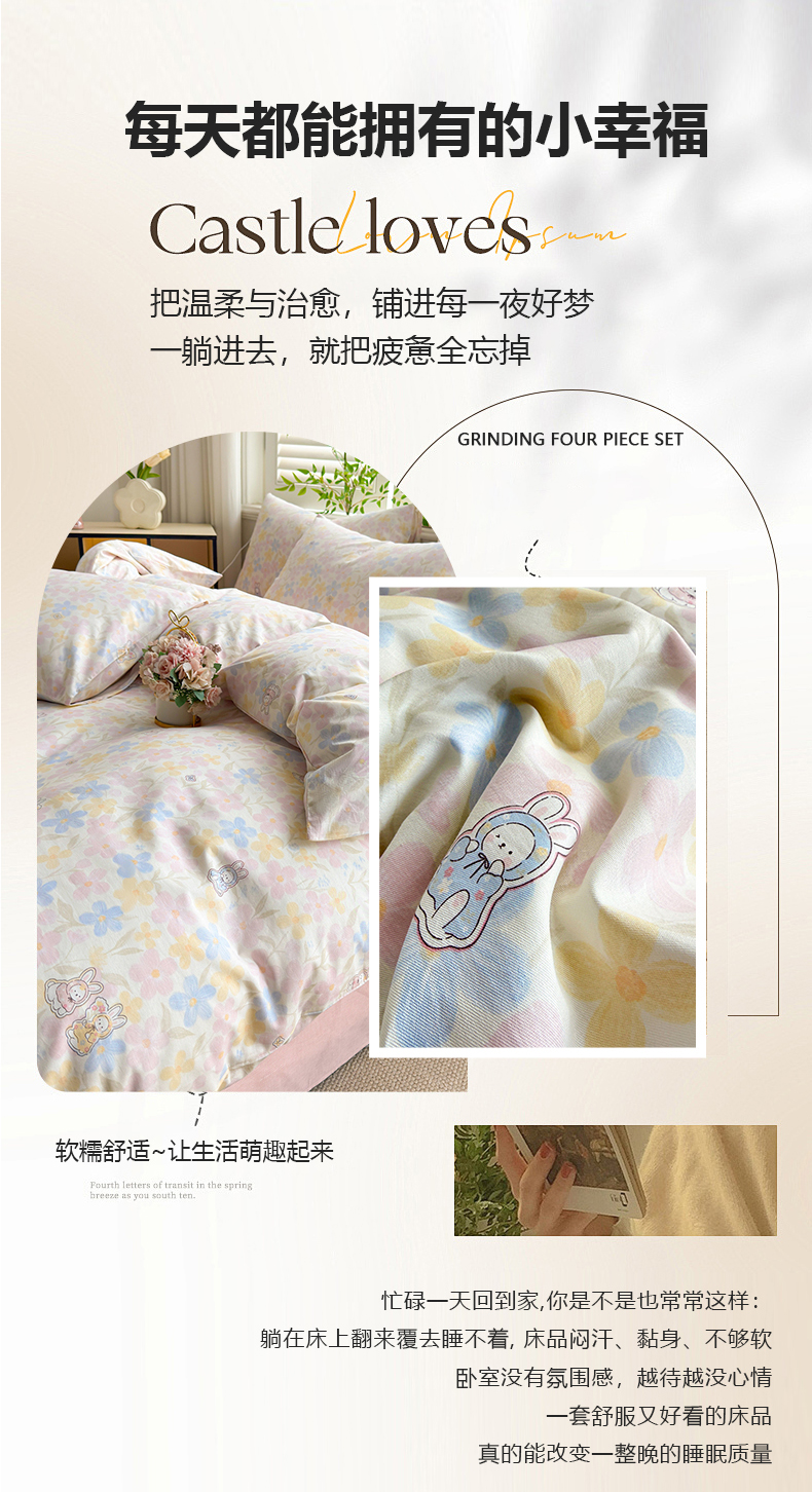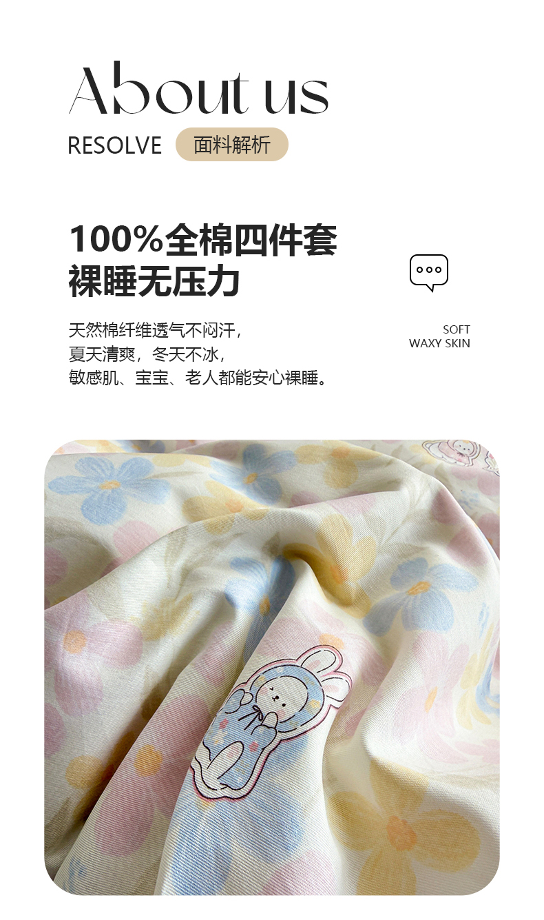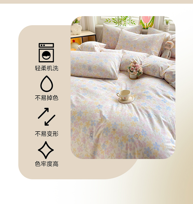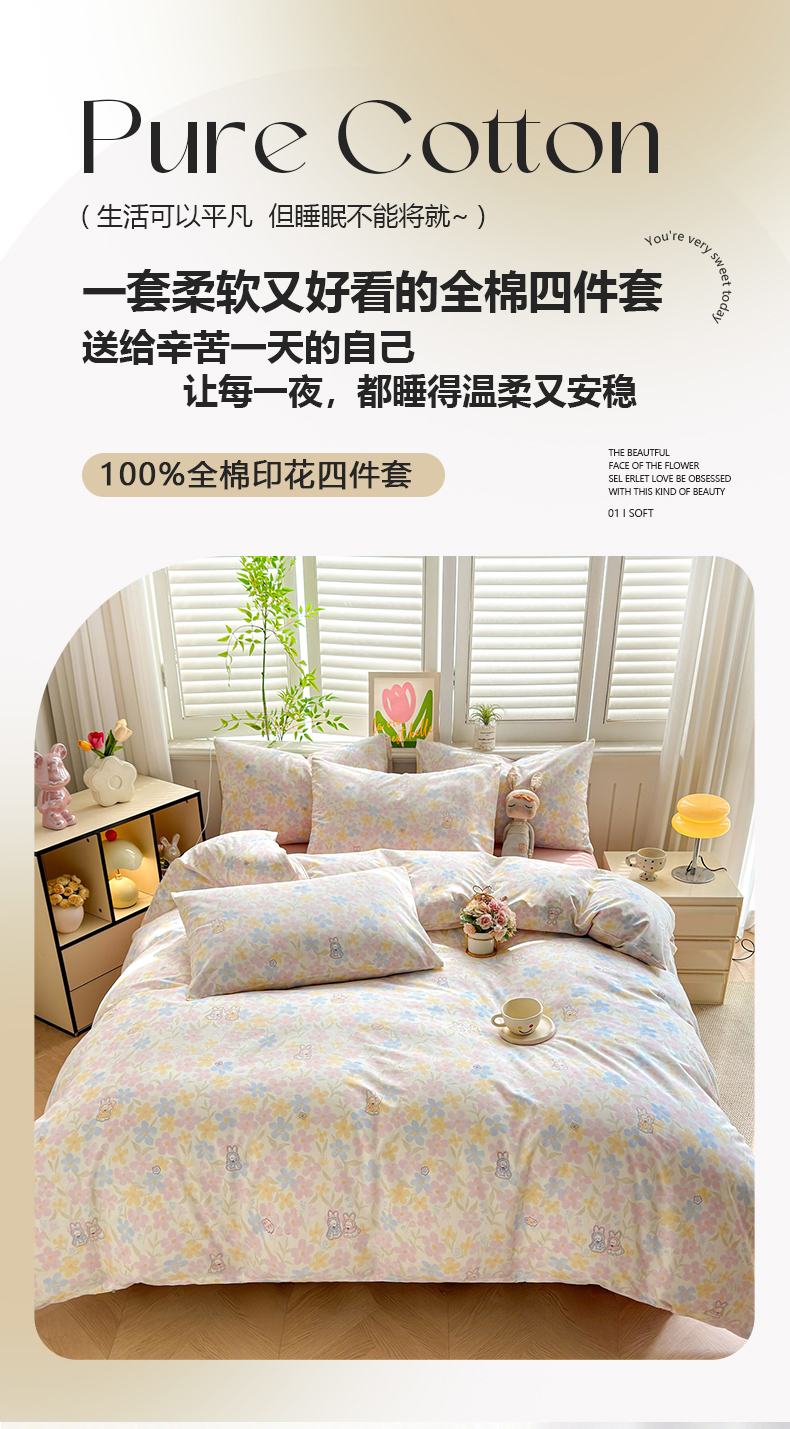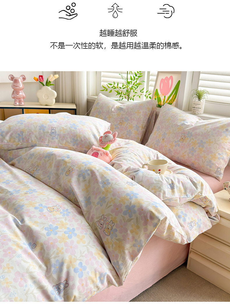 • 91家纺网 家纺一手货源 找家纺 黛妮雅 2026新款AB版全棉印花单被套床单枕套 送买家秀 花田兔语