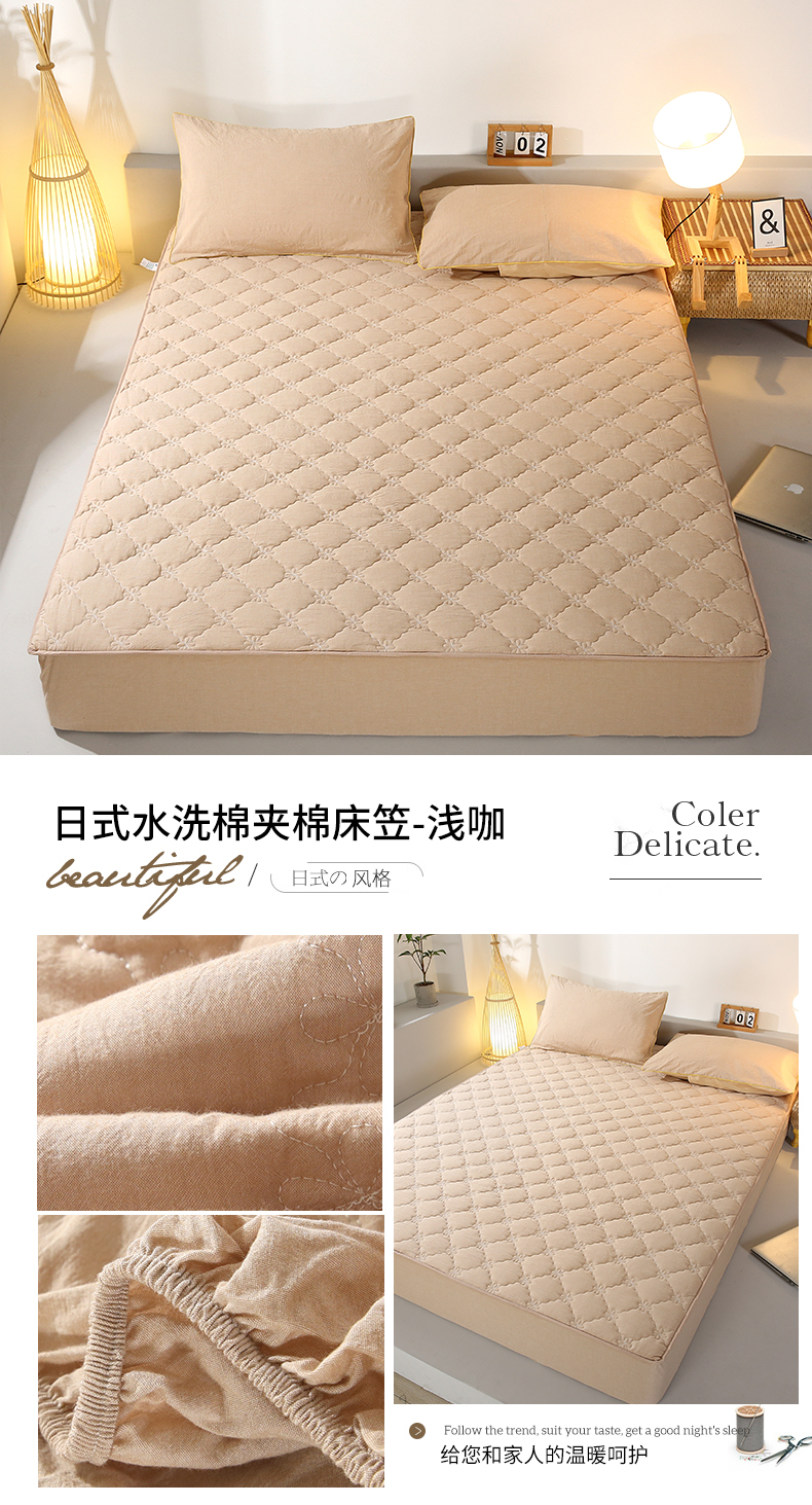 • 91家纺网 家纺一手货源 找家纺 乐逸家纺 2026新款日式100%全棉色织水洗棉夹棉床笠 日式水洗棉夹棉床笠-浅咖