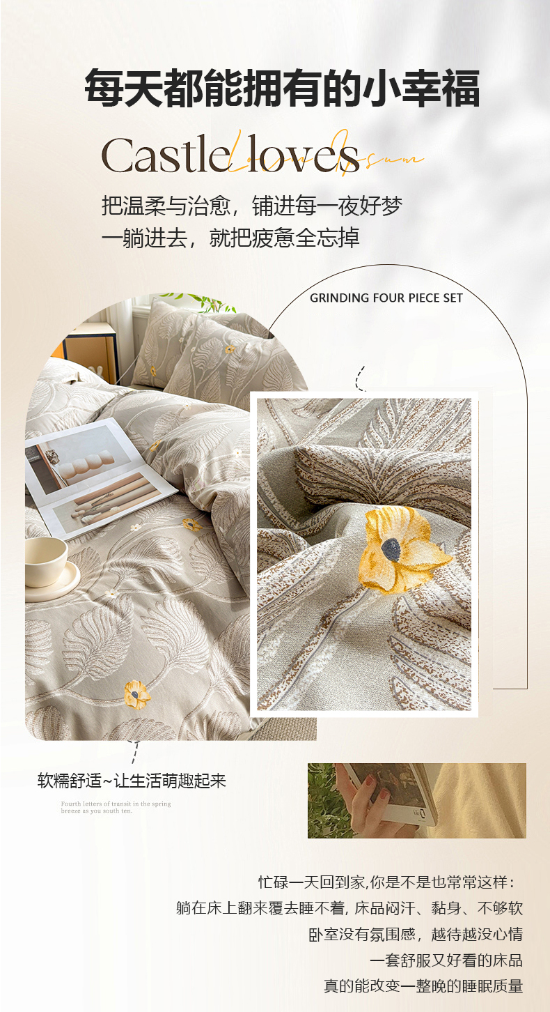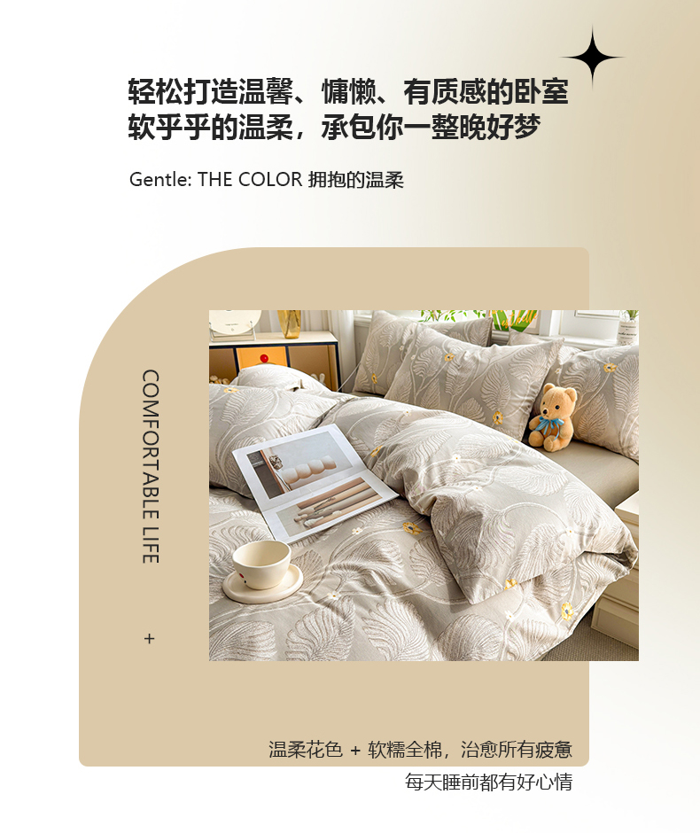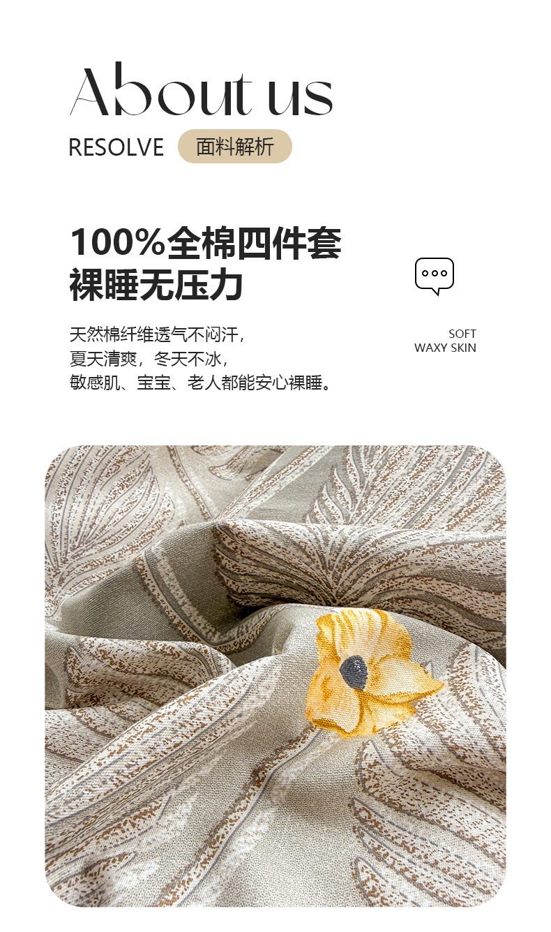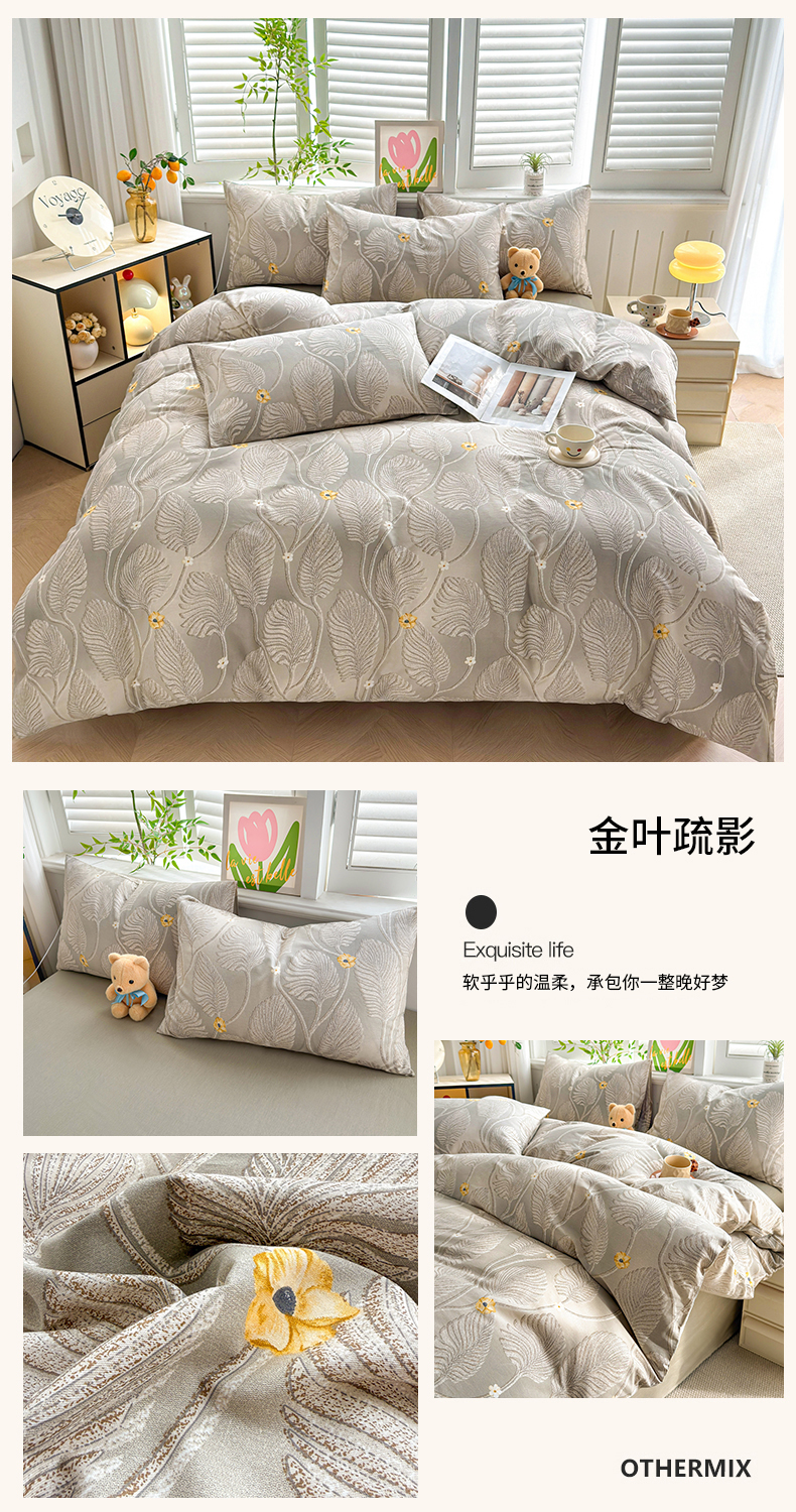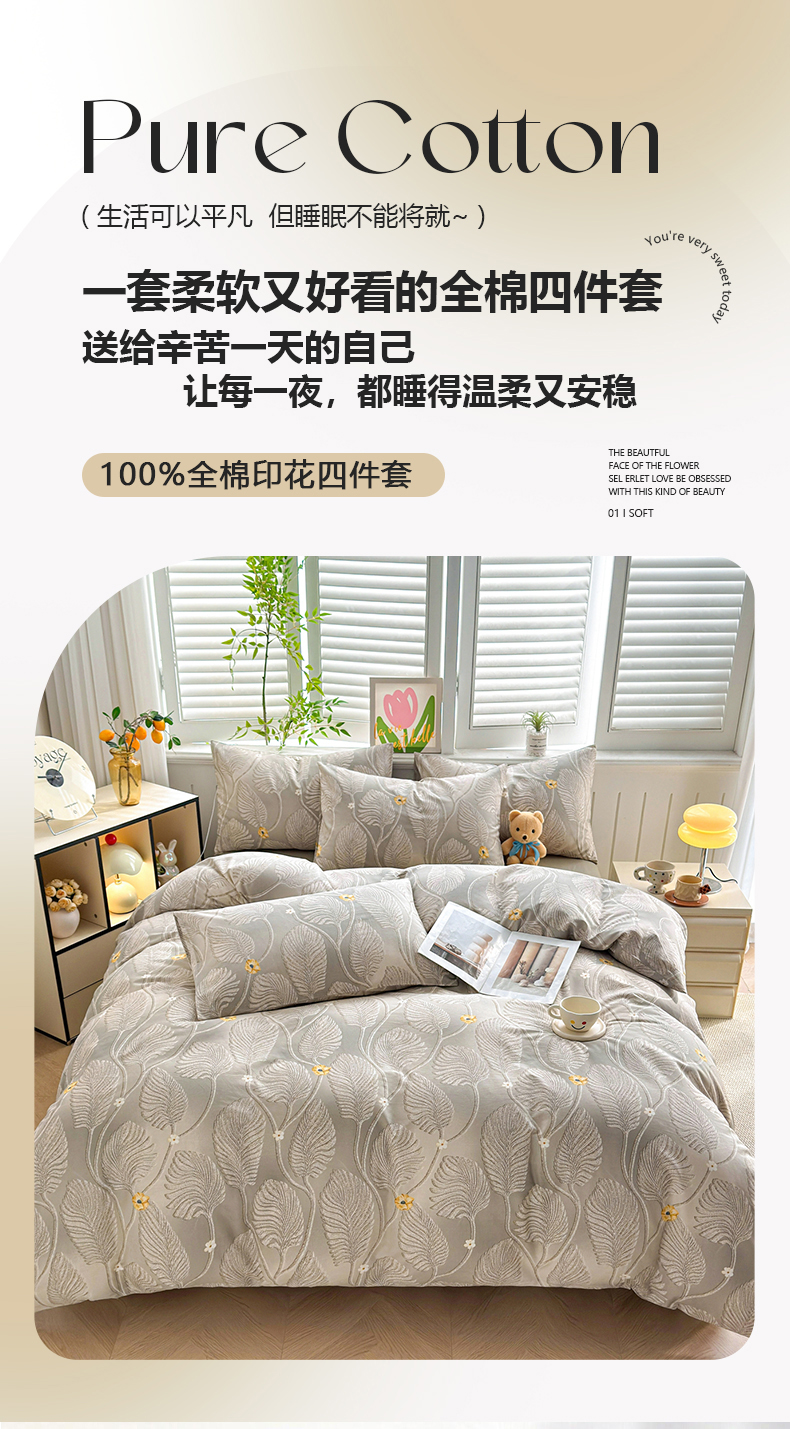 • 91家纺网 家纺一手货源 找家纺 黛妮雅 2026新款AB版全棉印花单被套床单枕套 送买家秀 金叶疏影