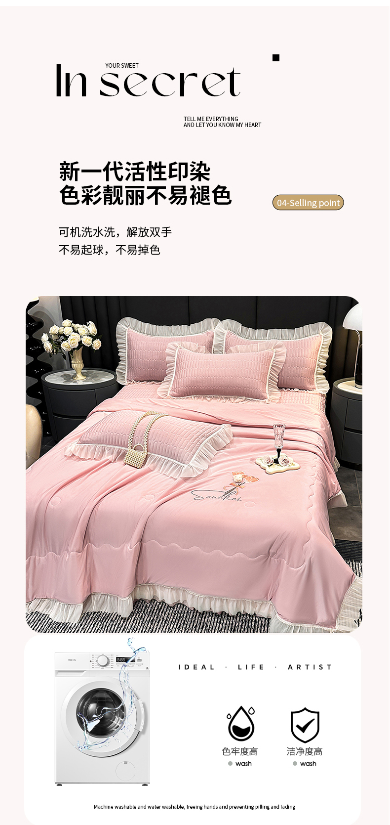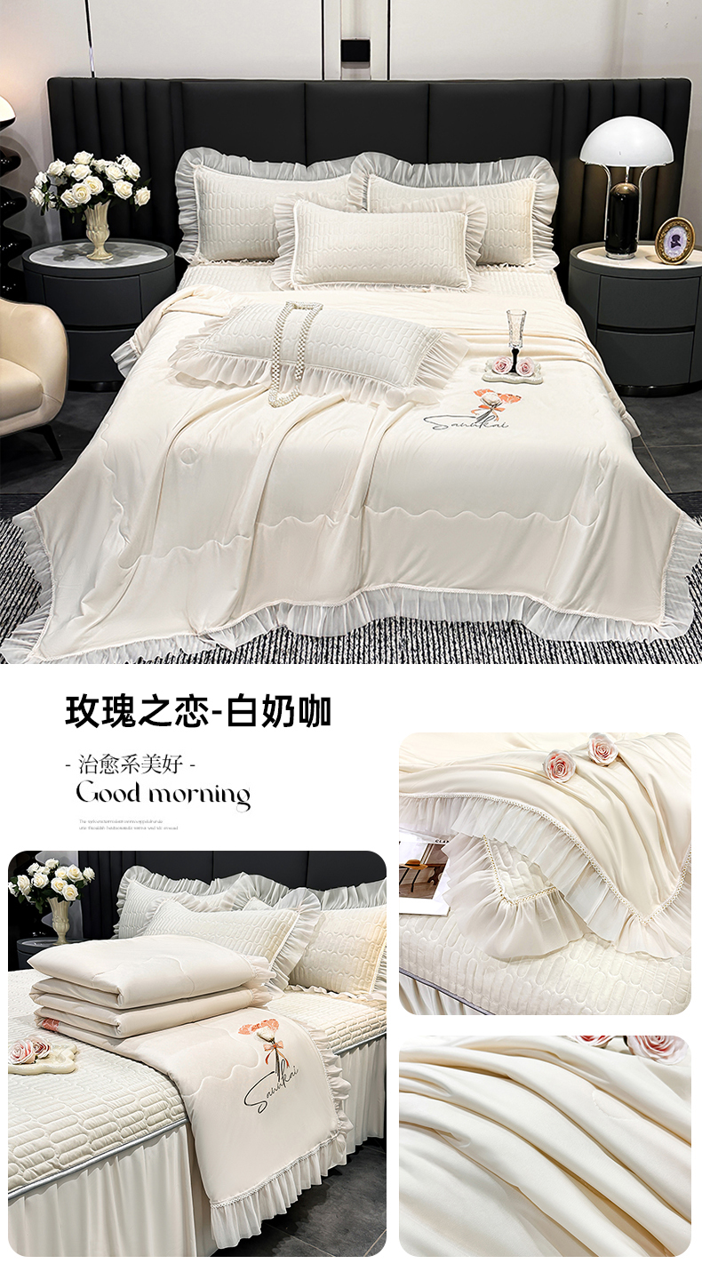 当前位置: 91家纺网 > 商品网购 > 床品套件 > 四件套 > 其它四件套 > 妮恒美家纺 2026新款凉感丝夏被床盖款四件套 玫瑰之恋-初恋玉