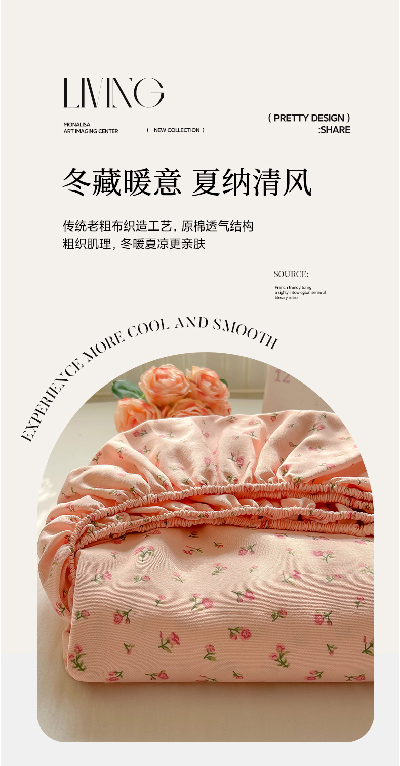 • 91家纺网 家纺一手货源 找家纺 韩巢家纺 2026新款老粗布床笠春夏季凉席席子热销款防滑床笠单件 花语【老粗布】