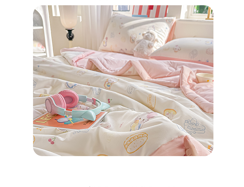 • 91家纺网 家纺一手货源 找家纺 颜选 2026新款水洗棉夏被夏凉被空调被四件套 空调被小女孩