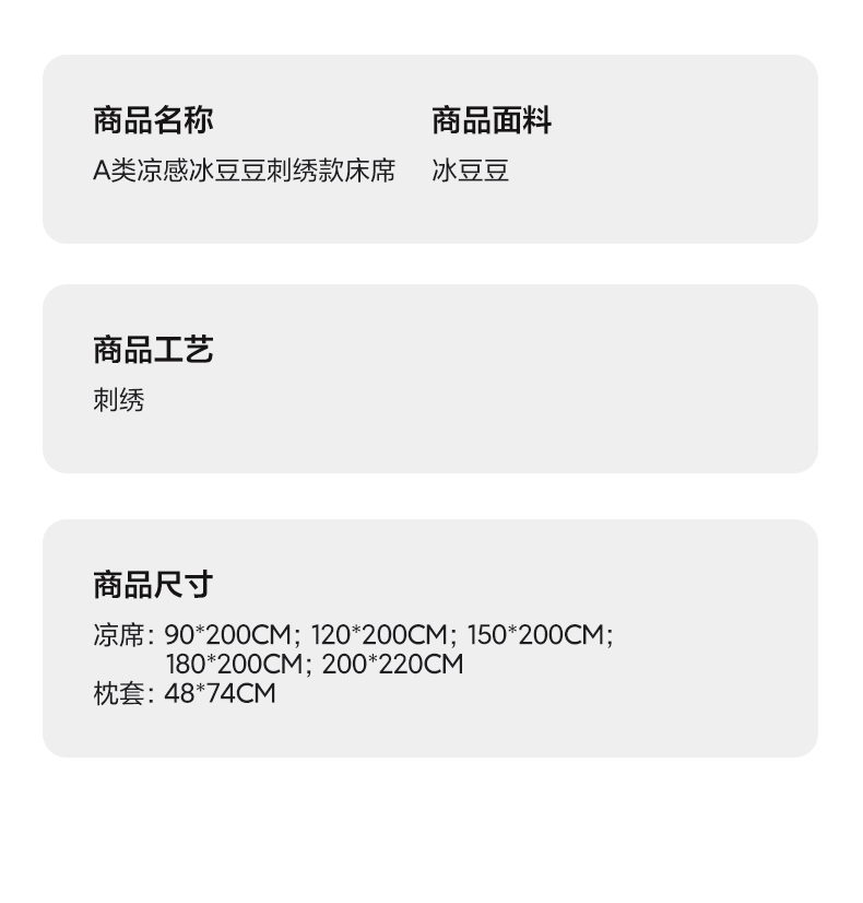 • 91家纺网 家纺一手货源 找家纺 眠势力 2026新款冰豆豆凉席刺绣款凉席子冰感豆豆床单软凉席三件套可机洗 山茶DC-灰
