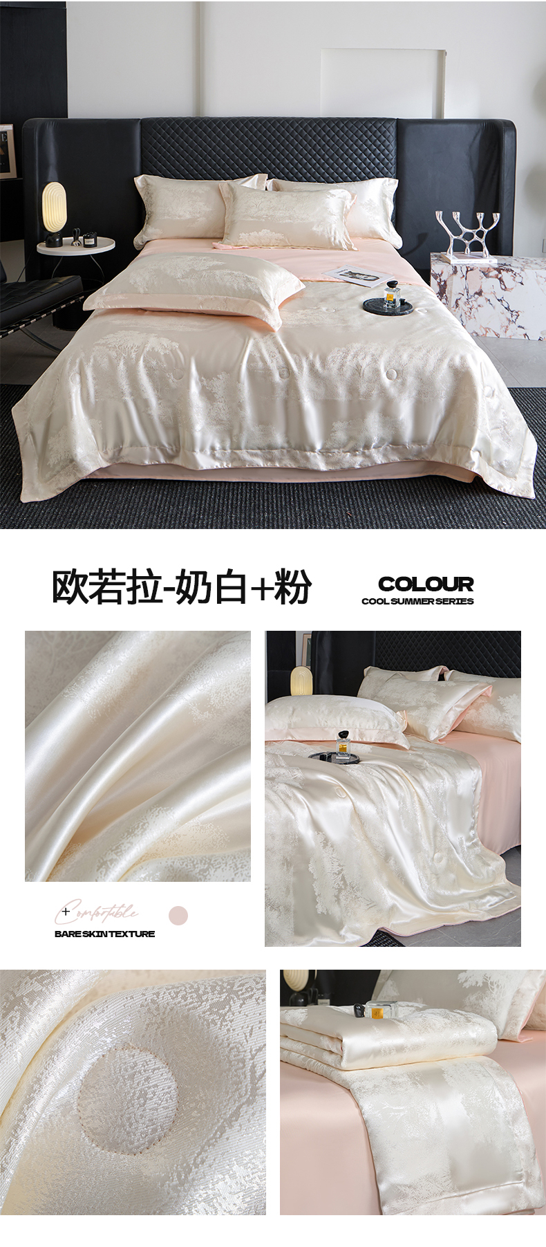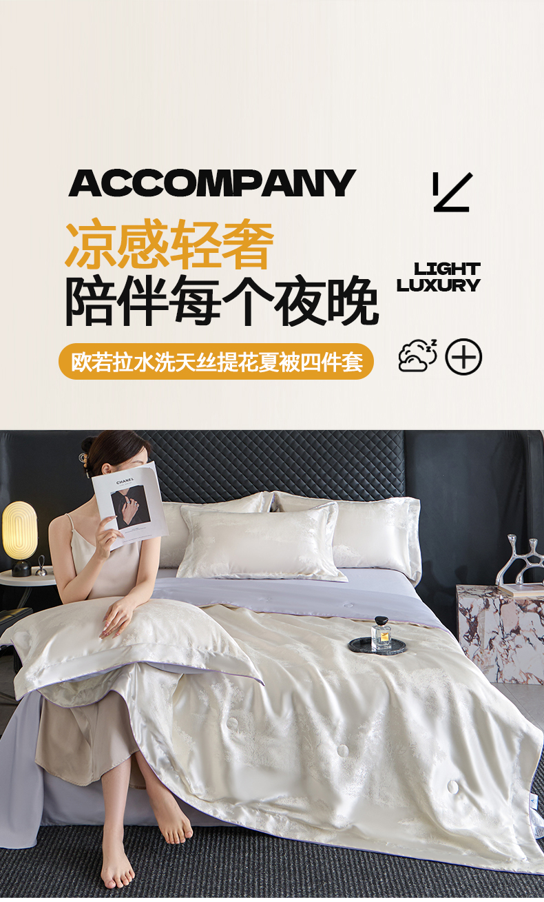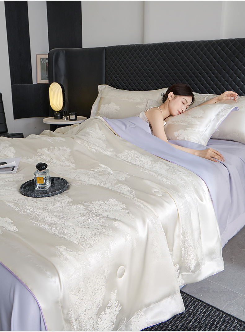 当前位置: 91家纺网 > 商品网购 > 床品套件 > 四件套 > 夏被四件套 > 置顶家纺 2026新款双面水洗天丝提花夏被四件套-欧若拉 欧若拉-奶白+香芋紫